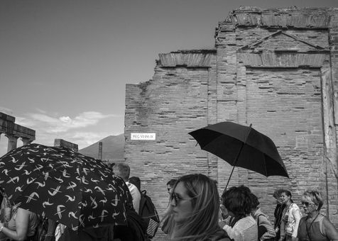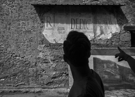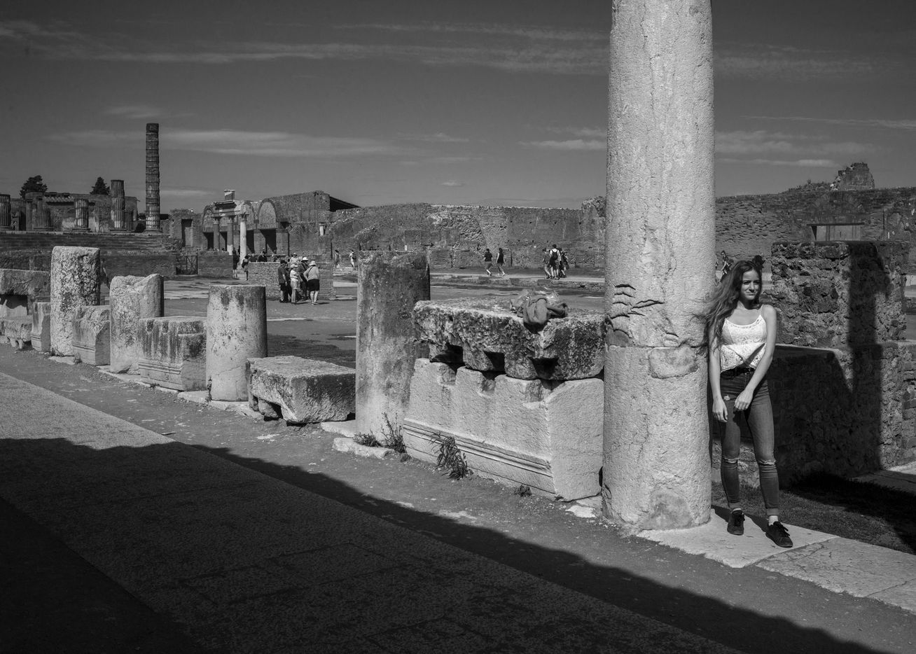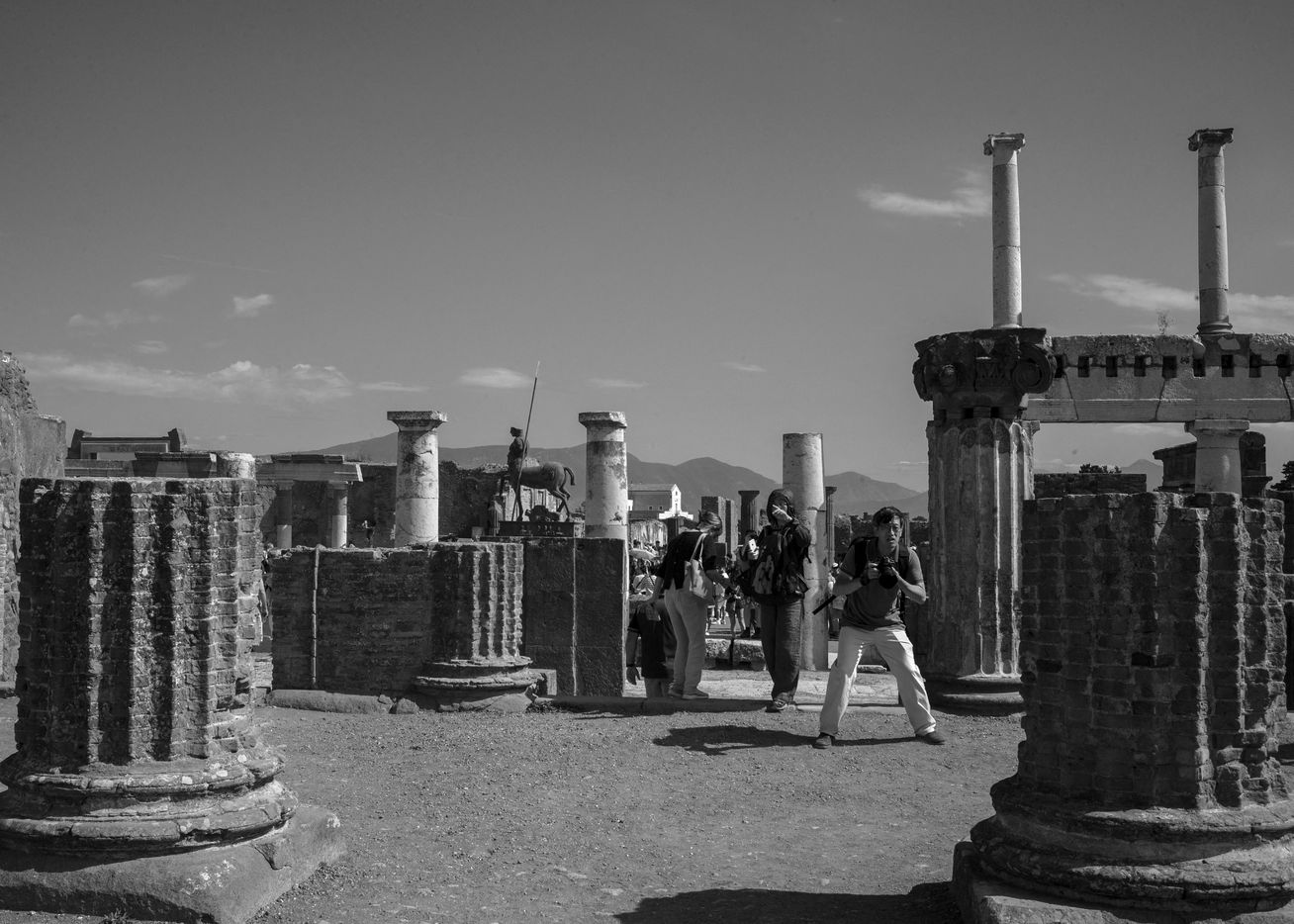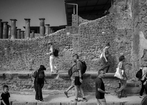 Tourisme dans les ruines de la ville de Pompei, en Italie, le 25 septembre 2018. Pompéi est une ville de l'Empire romain, située en Campanie. Y vivaient environ 30 000 habitants lorsqu'elle fut détruite lors de l'éruption du Vésuve en l'an 79 apr. J.-C. Le site archéologique est classé au patrimoine mondial de l'UNESCO depuis 1997, avec Herculanum et Torre Annunziata.