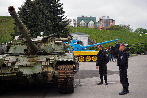Pour la première fois, le pays a célébré le 70e anniversaire de la reddition allemande en même temps que les pays d'Europe de l'Ouest. Jusqu'à présent, Kiev commémorait cet événement le 9 mai, comme la Russie. Le président, Petro Porochenko, a voulu faire de ce 8 Mai une journée d'émancipation à l'égard de Moscou, renonçant au vocable « Grande Guerre patriotique » en vigueur en Russie pour celui de « seconde guerre mondiale ».