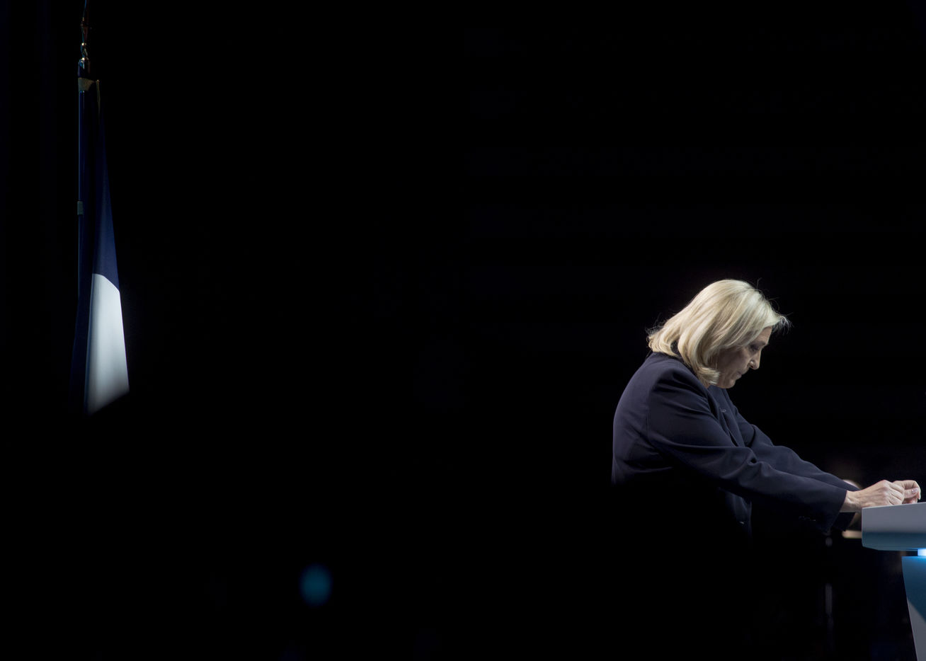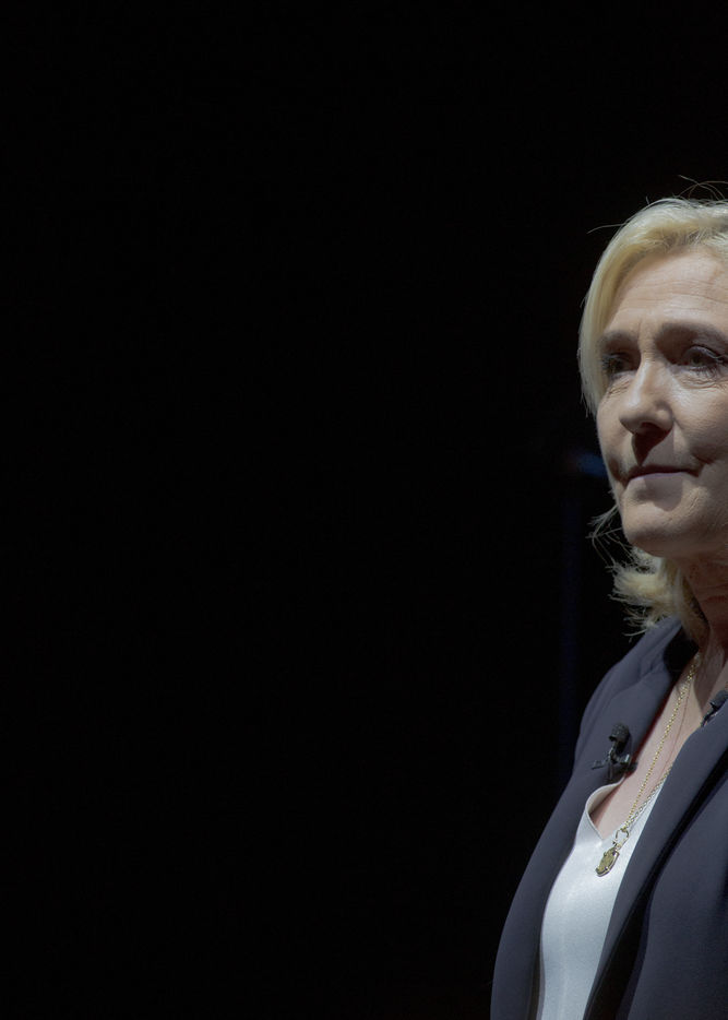 Premier meeting de la candidate Marine Le Pen du Rassemblement National (RN) lors de la campagne pour l?élection présidentielle, à Reims, en France, le 5 février 2022.