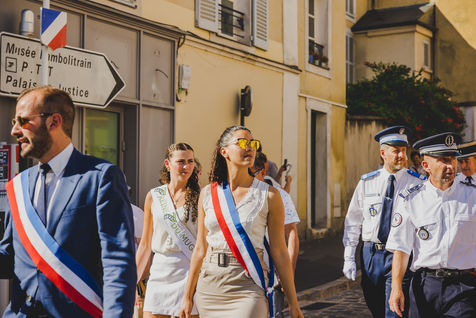 Avec un état d'esprit joyeux, la population de la ville de Rambouillet, située à 40 Km au Sud-Ouest de Paris, assiste, en présence de Gérard LARCHER, président du Sénat, aux festivités du 14 juillet, la fête nationale française.