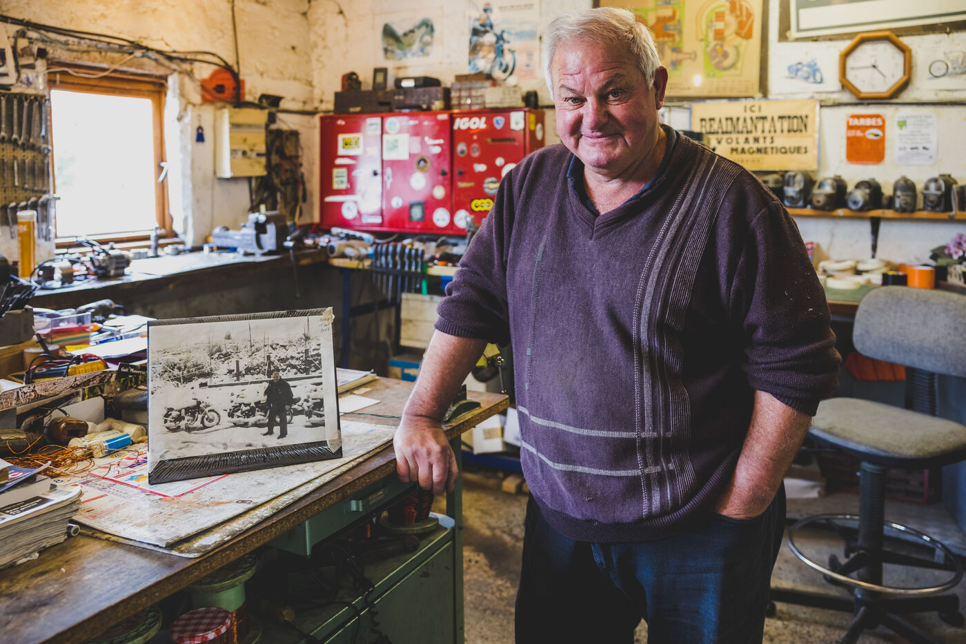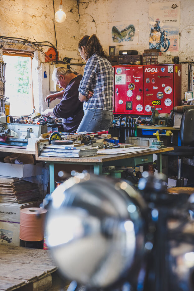 Lisa Bordes loves rare professions. Last year, she left the civil service, where she was teaching in Occitan in a bilingual French-Occitan school, to take up an unusual craft: repairing vintage motorbike, cars and tractors ignition coils. It's a rare and meticulous craft, practised by enthusiasts and practised by only 4 craftsmen in France today. But what is a ignition coil ? Thanks to its winding system through which an electromagnetic current flows, the ignition coil creates a spark that reaches the spark plug and enables the vehicle to start. The winding machine's job is to replace the copper winding of an ignition coil to restore its electrical properties. It's a precision job, carried out mainly by women in the first half of the 20th century, before automation. But Lisa's work doesn't stop at winding: she carries out a complete overhaul of the magnetos in the old vehicles of her customers, who are mainly men, but just as passionate as she is. Based in a village in the Gers, the young woman bought the workshop of the lively Francis Delord at the same time as his birthplace. At 68, Francis has decided to retire and move to a smaller house a few miles away. And Francis isn't doing things by halves: when he sold Lisa his workshop, he undertook to pass on his know-how to her. Accompanied by his old dog Max, he visits her from time to time to refine her skills in winding copper wire and assembling ignition coils. On each visit, Lisa praises her mentor's patience with her. Francis hides his game well. Extremely active, he still takes part in motorbike rallies all over the world. It's a tough job. If she wants to maintain a sufficient income, Lisa has to work non-stop. She has to sell 2 or 3 ignition coils a week to make a profit. But she has no regrets about her choice. Lisa loves her independence above all else; she enjoys the peace and quiet of the Gers countryside and working with her two faithful cats, Brume and Ephy.