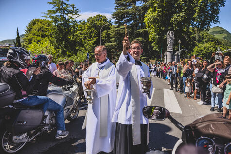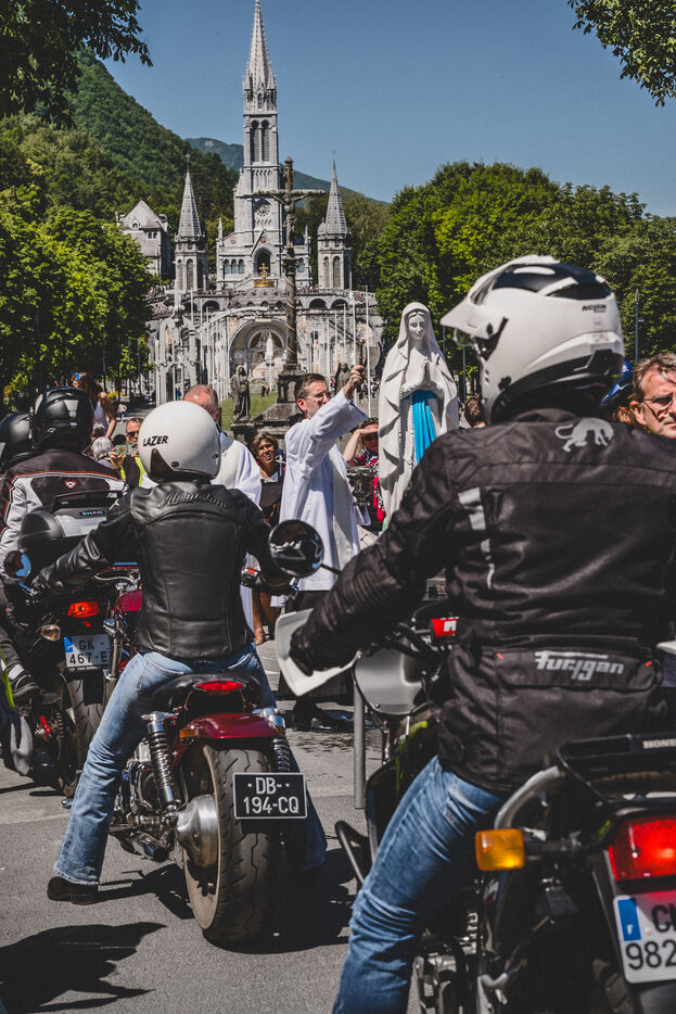 Les 15 et 16 juin 2024, au pied des Pyrénéees, la ville de Lourdes, a accueilli la 32ème édition du Pèlerinage des Motards. Venus de toute la France et d'Espagne, 4000 passionnés de deux-roues ont participé à ce rassemblement spirituel et festif original. Entre spectacle de moto acrobatique, recustomisation expresse de moto vintage, ballade sur les cols brumeux des Pyrénées et bien sûr, le moment tant attendu des pèlerins, la bénédiction de milliers de motards en blouson de cuir devant la Porte Saint Michel en présence de la statue d'une Vierge des Motards, l'évènement ne pouvait laisser indifférent. Sa réussite doit beaucoup à l'engagement de Stéphane Peyras, le président fondateur du Pèlerinage et au soutien de Thierry Lavit le Maire de Lourdes, lui-même motard,