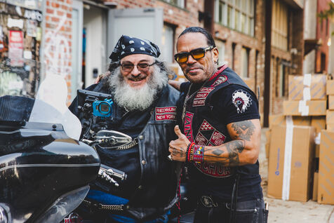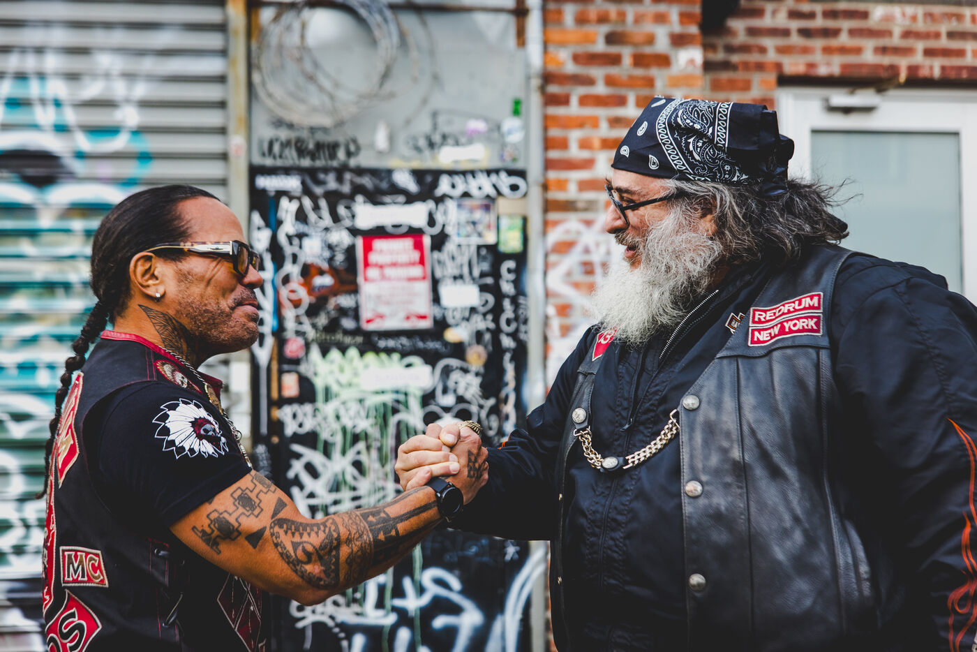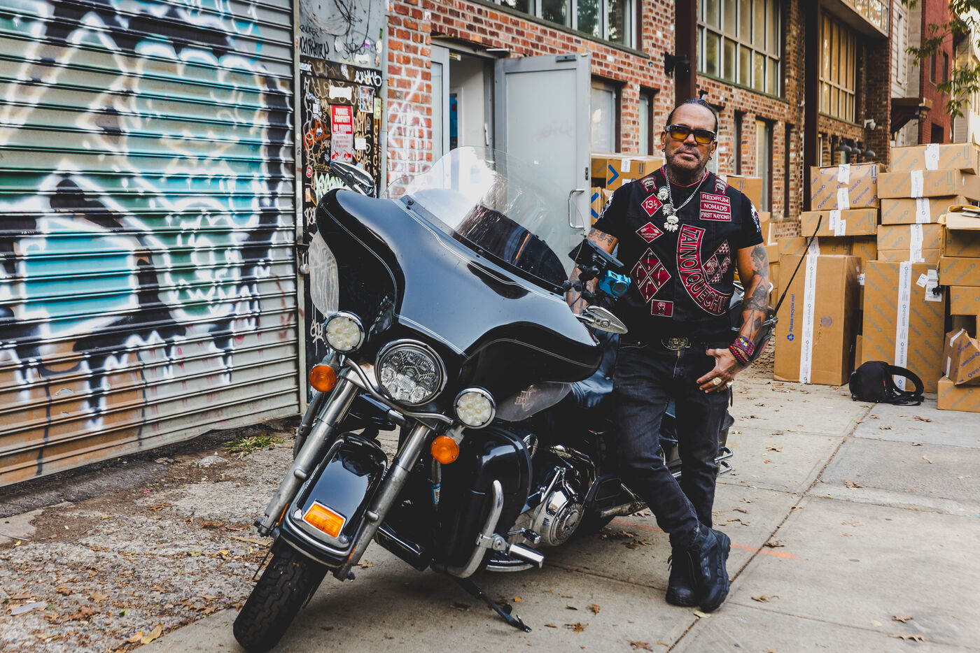 Meeting in Brooklyn with Cliff Matias, Native American and president of the international motorcycle club Redrum MC. This club with Native American roots welcomes members from all backgrounds and uses motorcycles as a tool for social change and solidarity. Their motto: Spreading positivity on two wheels. During the interview with Cliff and club member Howard, Stella Standingbear, a young award-winning Native American hip-hop singer and also a biker, arrives.