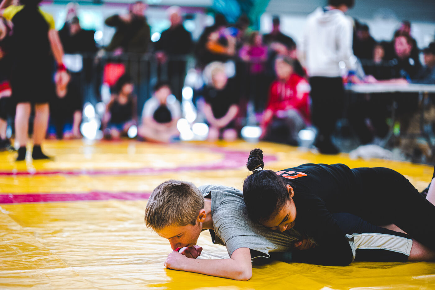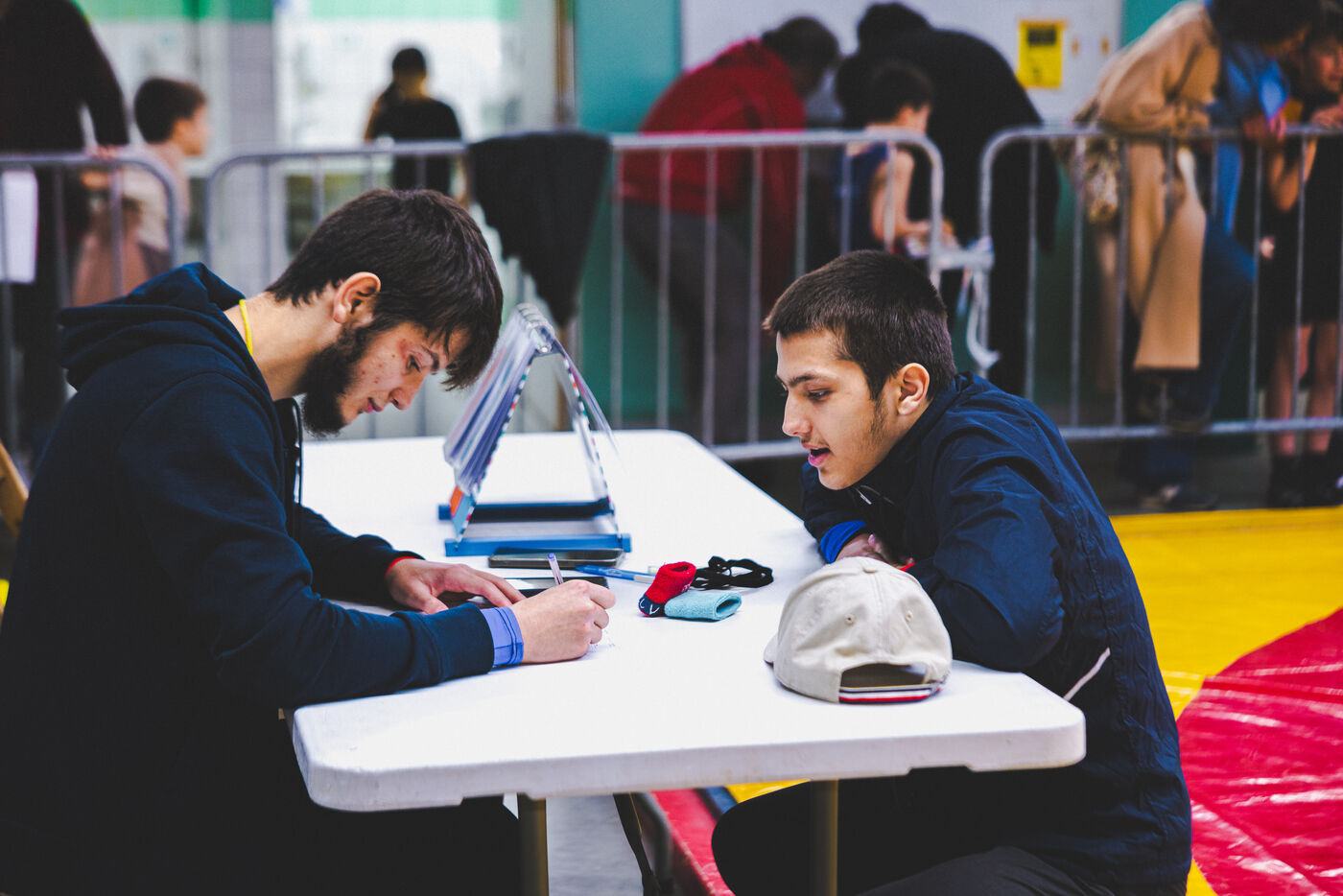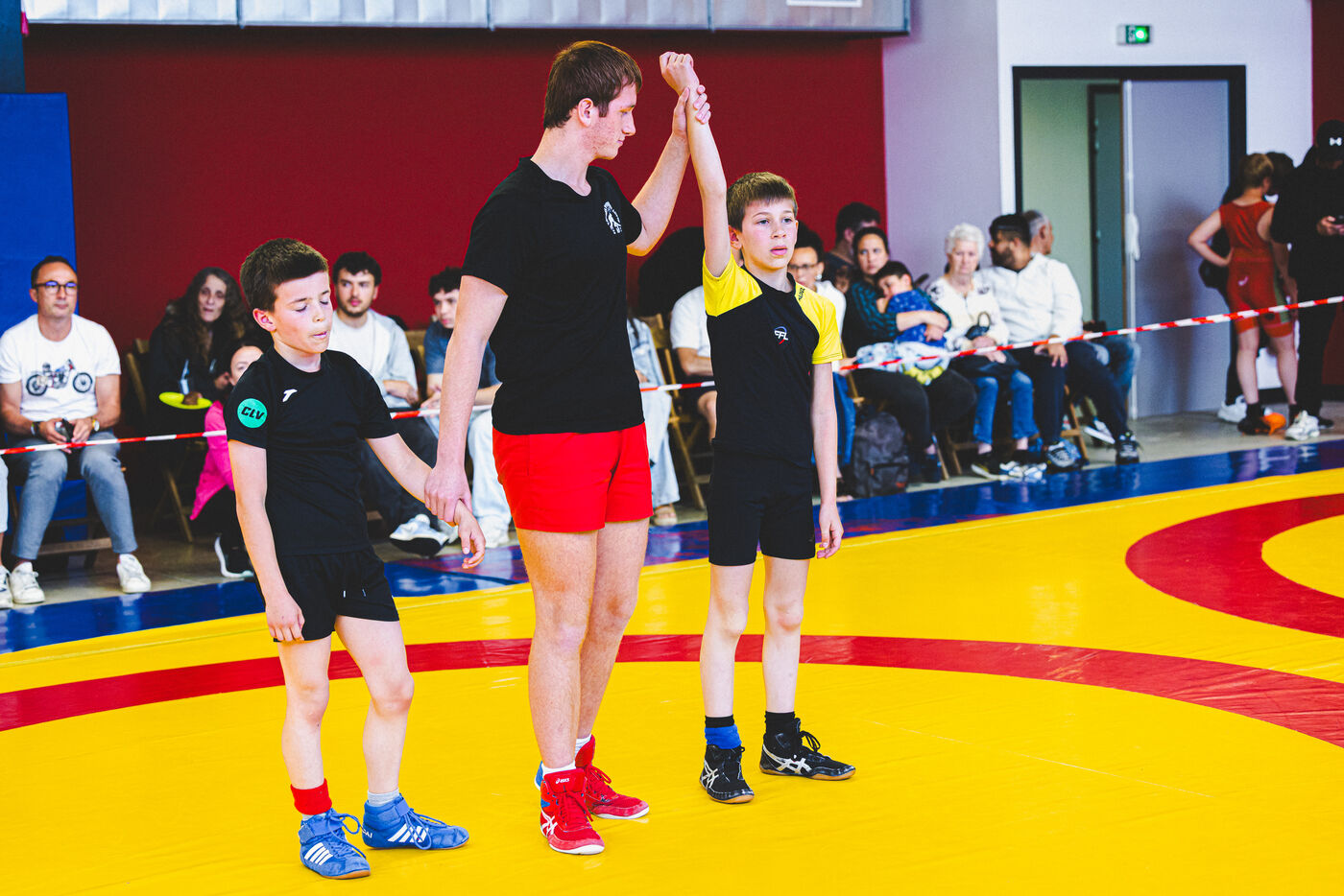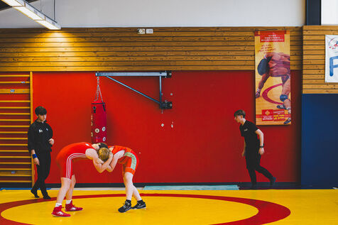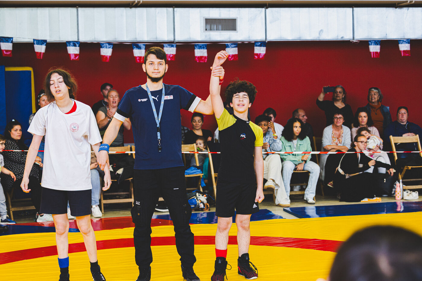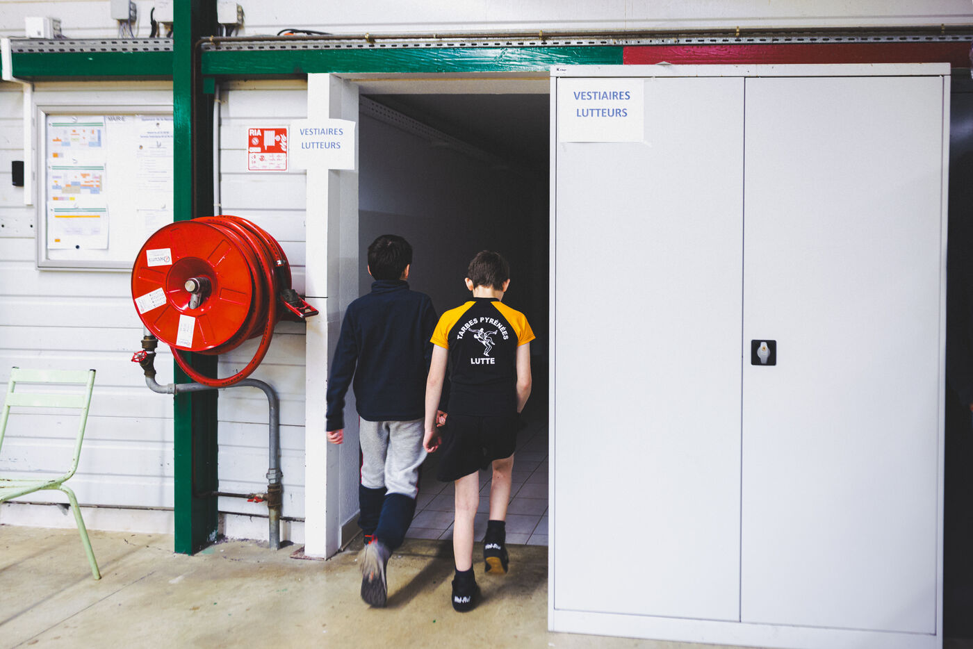 This series shows various wrestling competitions in Bigorre, South-West of France. Maubourguet and Vic-en-Bigorre Wrestling Club hosted competitions bringing together around one hundred junior wrestlers from clubs in Occitanie, including Montauban, Toulouse, Tarbes, Maubourguet, and Vic-en-Bigorre. Girls and boys competed in often spectacular mixed matches in front of their families. This sport, which attracts a diverse audience in Occitanie, benefits from the experience and wrestling culture of coaches of Chechen origin. The development of the Bigourdane school of wrestling is greatly indebted to the late Charly Cancel, a national referee and regional and departmental wrestling administrator, whose sons have continued his work in the Bigorre region.