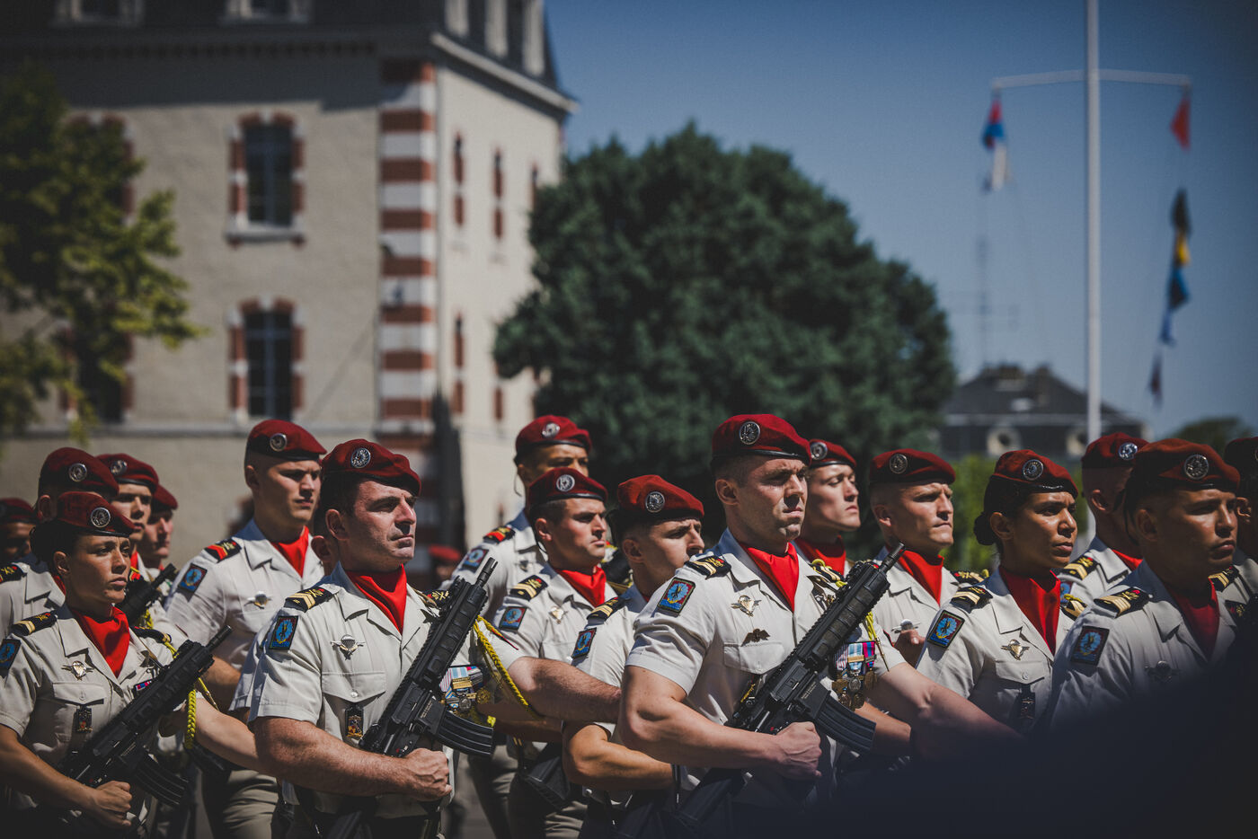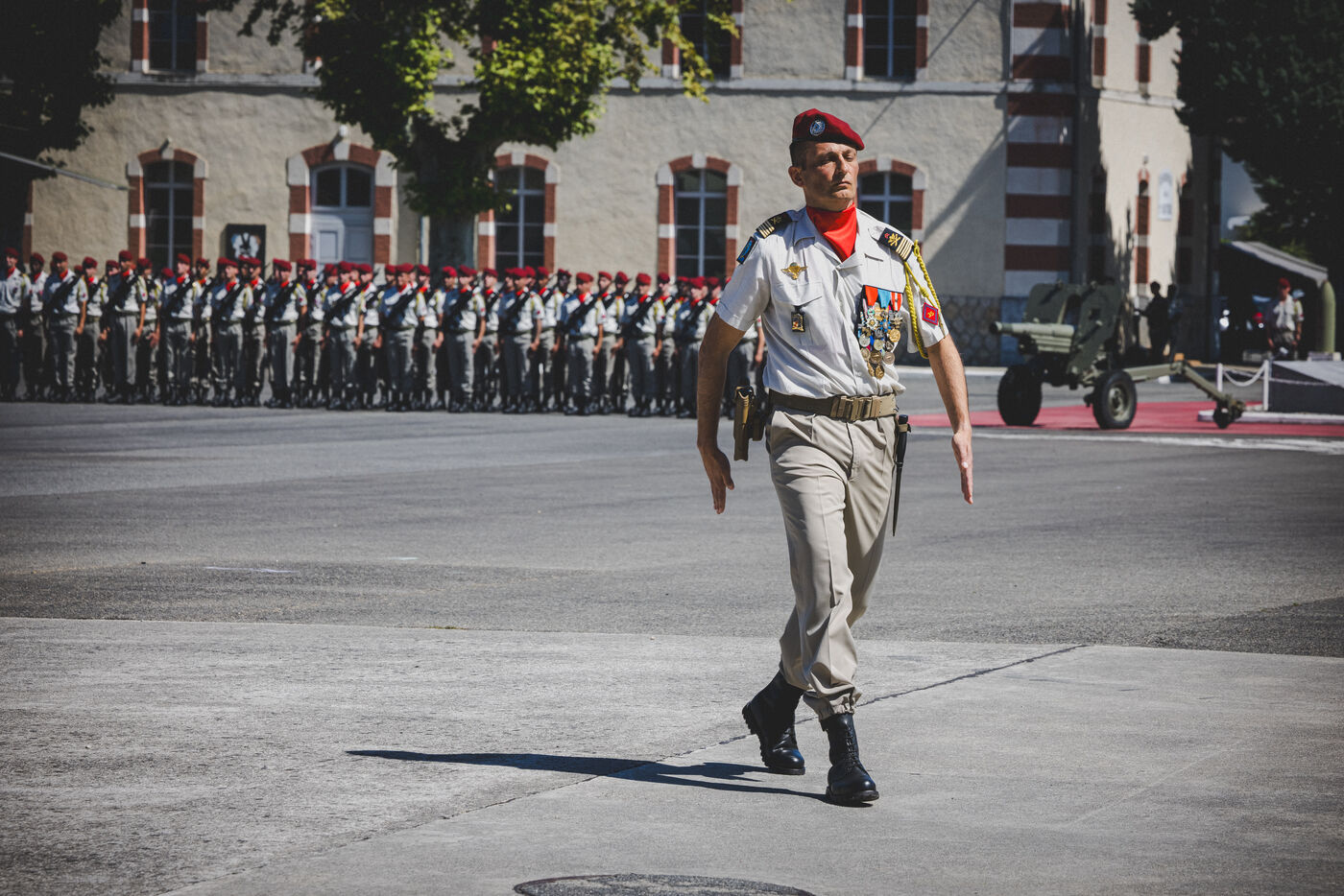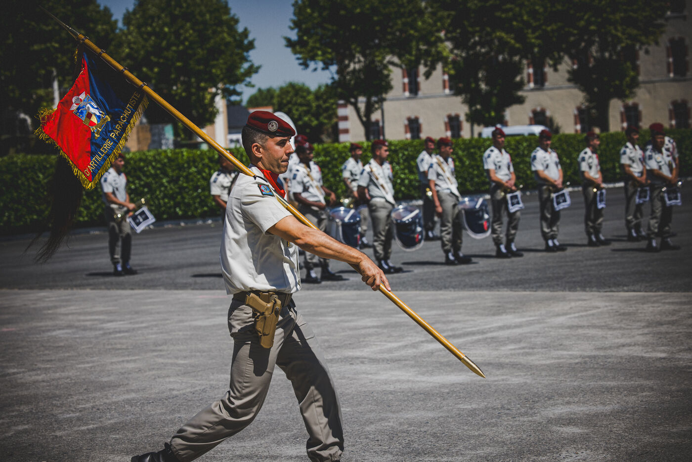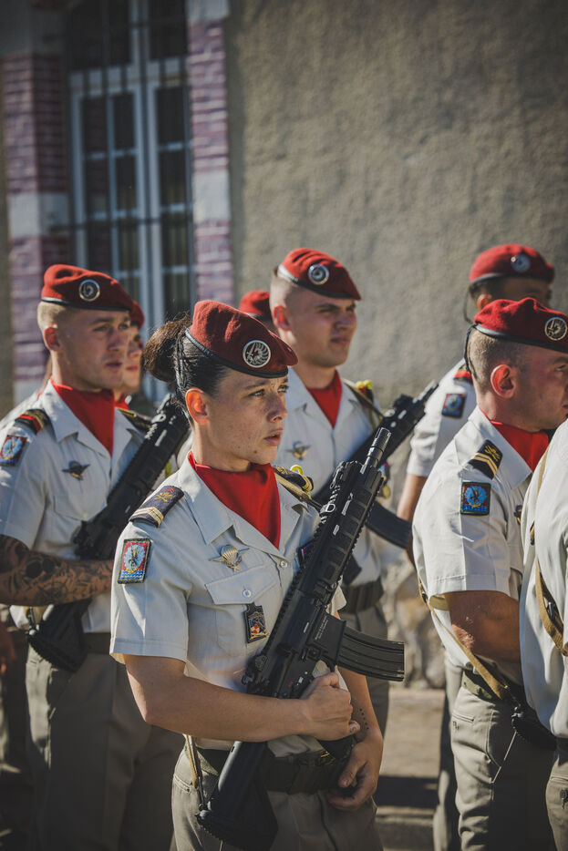 Following a change of command ceremony with her predecessor, Colonel Tristan Zeller, Colonel Marie de Lazzer became the first woman to take command of the 35th Parachute Artillery Regiment in Tarbes and to take command of a parachute regiment in France. She shared her pride, emotion and sense of humility, saying: “Because in front of me are remarkable men and women, in terms of their expertise and their sense of commitment. Men and women to whom I may have to say: you are going to combat, and perhaps not all of you will be back”. Making Lyautey’s motto her own—“The joy of the soul is in action”—the new commanding officer outlined two priorities for her unit: being ready to deploy with equipment in operational condition and well-trained personnel; and acting in support of the regiment’s environment, notably families and partners. Not coming from a military family background, she chose to pursue a career in light artillery because she wanted “something light, agile, feline—something that maneuvers quickly, with that dedicated spirit, a bit of daring, parachuting, and going on adventures.” She also emphasized the importance, given current geopolitical challenges, of maintaining (3D) capabilities such as parachute artillery (far, high, and wide), which offer deep-action options.