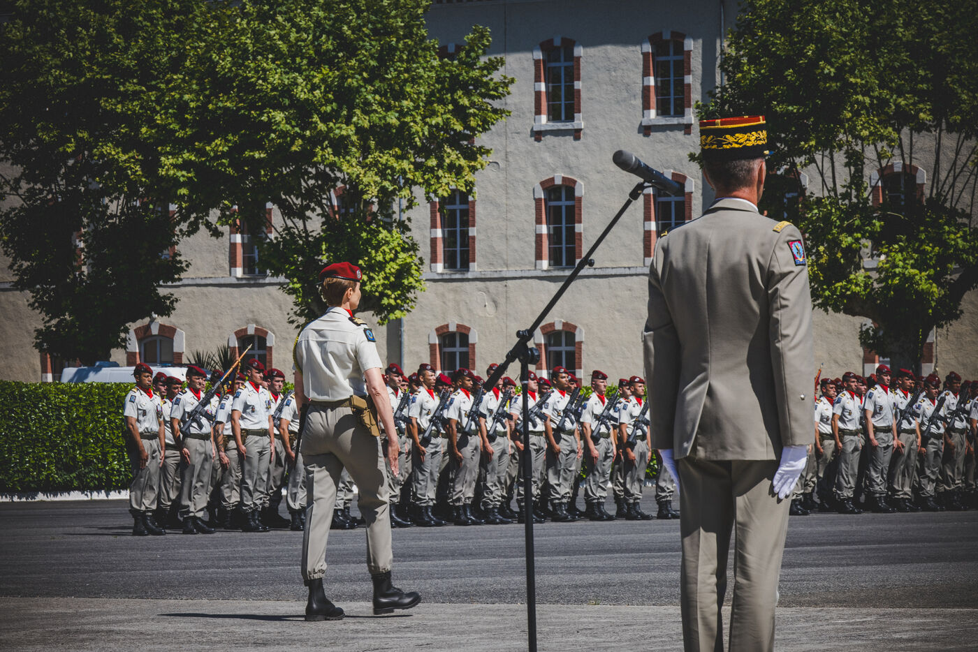 Aux termes d'une cérémonie de passation de commandement avec son prédécesseur le Colonel Tristan Zeller, le Colonel Marie de Lazzer, devient la première femme à commander le 35ème régiment d'Artillerie Parachutiste à Tarbes et à commander un régiment parachutiste en France. Elle a partagé sa fierté, son émotion et son sentiment d'humilité "parce qu'en face, il y a des hommes et des femmes remarquables, dans leur niveau d'expertise, dans leur sens de l'engagement. Des hommes et des femmes auxquels je vais dire vous partez au combat et peut-être que vous ne reviendrez pas tous". Faisant sienne la devise de Lyautey, « La joie de l'âme est dans l'action », la nouvelle cheffe de corps a indiqué les deux priorités pour son unité: être prête à être déployée avec le matériel en condition opérationnelle optimale et des hommes formés à l'action; agir en direction de l'environnement du régiment, notamment les familles et les partenaires. Non issue d'une famille de militaires, elle a orienté sa carrière vers l'artillerie légère parce qu'elle voulait "du léger, du souple, du félin, quelque chose qui manœuvre vite, avec cet état d'esprit, un peu d'audace, sauter en parachute et partir à l'aventure". Et de rappeler l'importance, au regard des enjeux géopolitiques actuels, de maintenir les capacités (3D) comme l'artillerie parachutiste (loin, haut et large) qui offrent des modes d'action dans la profondeur.