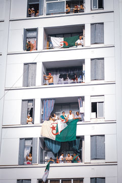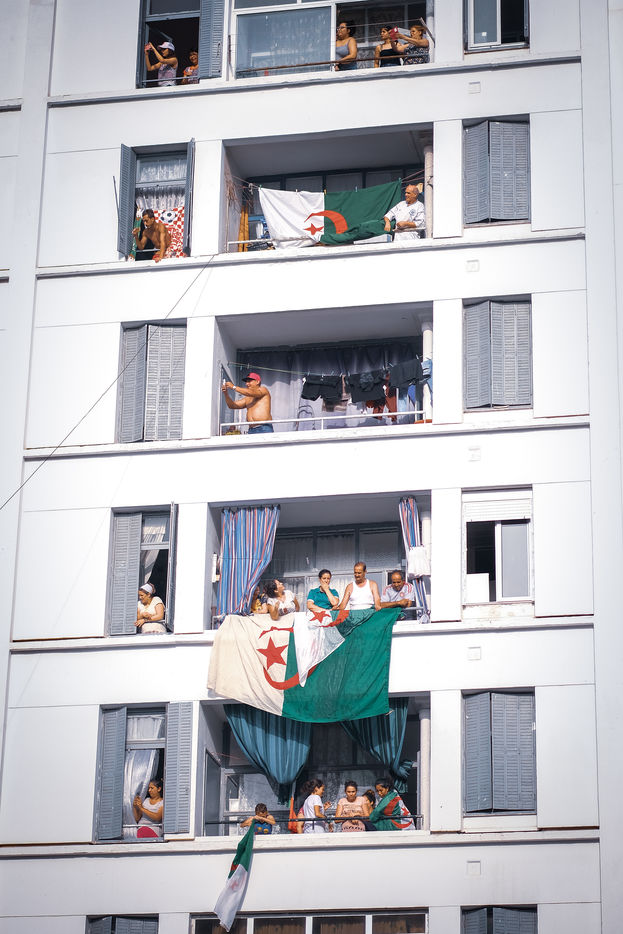 Comme tous les vendredis depuis le 22 fevrier 2019, las algeriens envahissent les rues d Alger pour participer au Hirak (Mouvement) et demander un nouveau systeme de gouvernance ainsi que d avantage de justice sociale. Depuis les balcons si caracteristiques de l architecture haussmanienne, les habitants d Alger ont pris l habitude de temoigner leur solidarite et leur soutien aux manifestants. En se regroupant, en accrochant des drapeaux ou en rafraichissant les manifestants. Cette serie montre un autre point de vue du Hirak. Une revolution depuis les balcons d Alger.