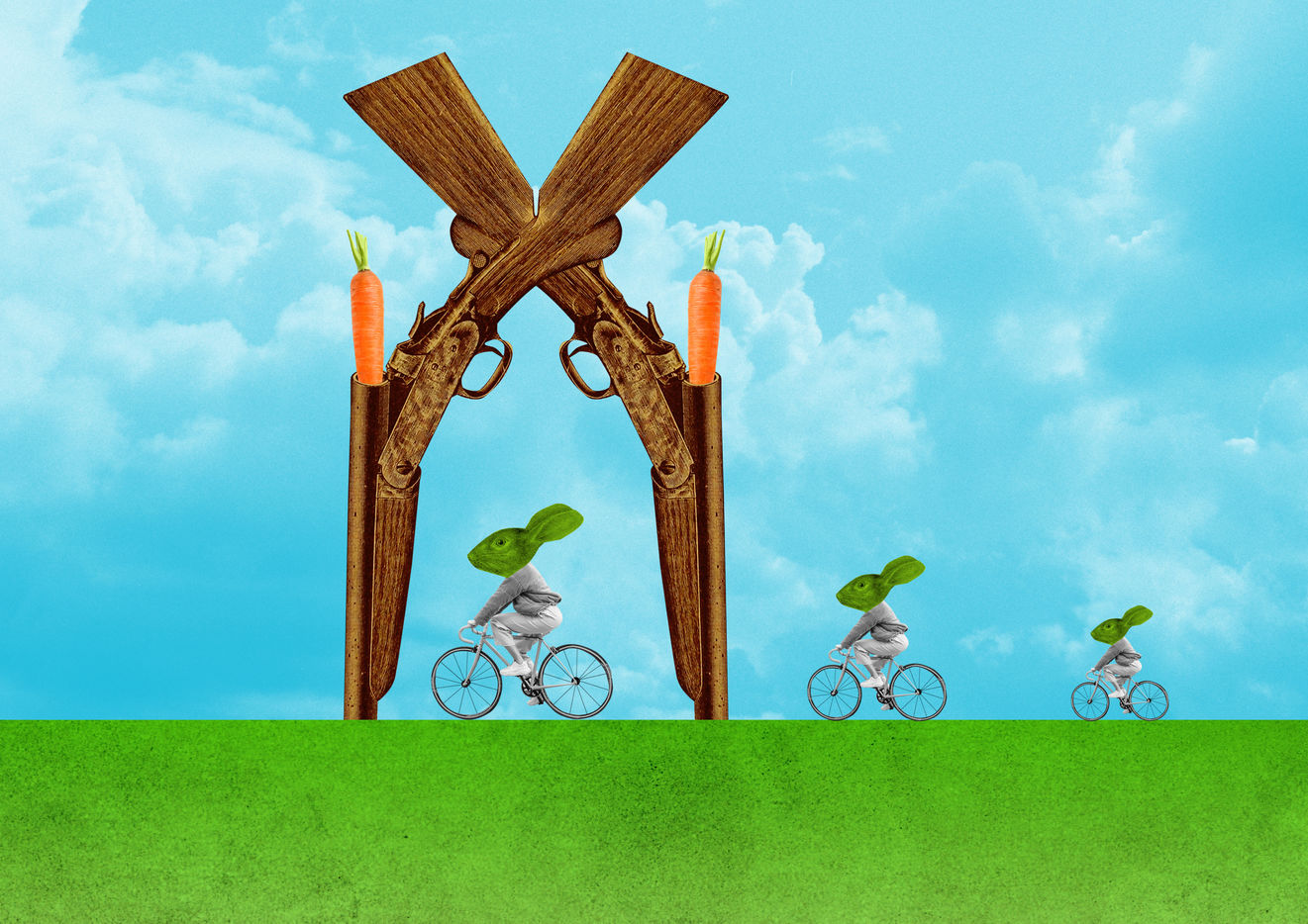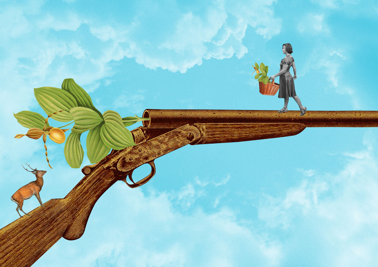 Série de collages sur le débat de l'interdiction de la chasse le week end