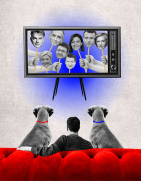 Série de collages sur les candidats à la présidentielle 2022 qui utilisent la télévision pour diffuser leur programme et idées