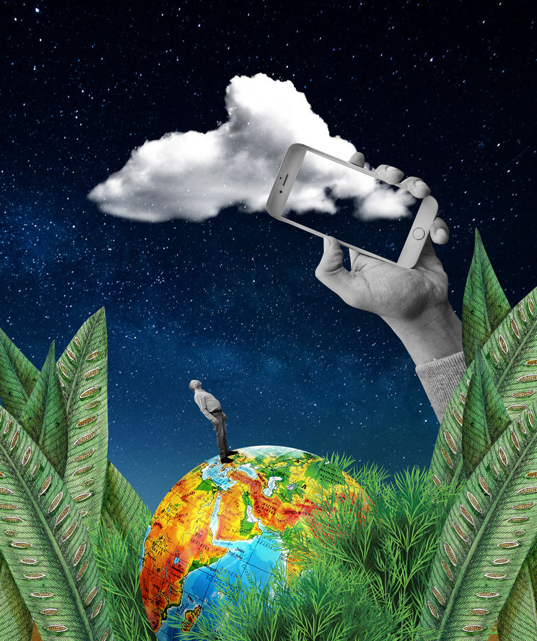 series of collages around the theme of reducing our digital footprint and how to adapt our use of email and the cloud for a more environmentally friendly practice.