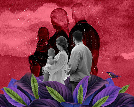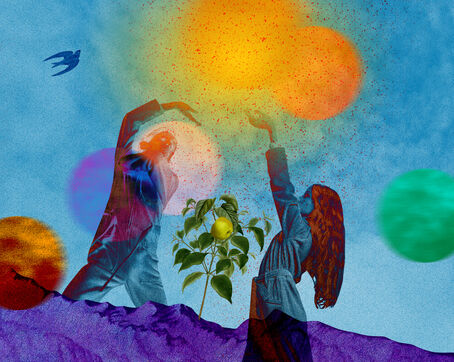 Series of collages around the theme of rebirth: birth of a human being, birth of a language, birth of a city, birth of a work, birth of faith, birth of a friendship
