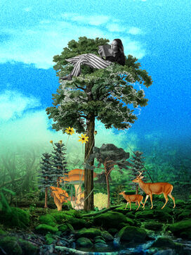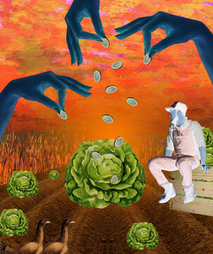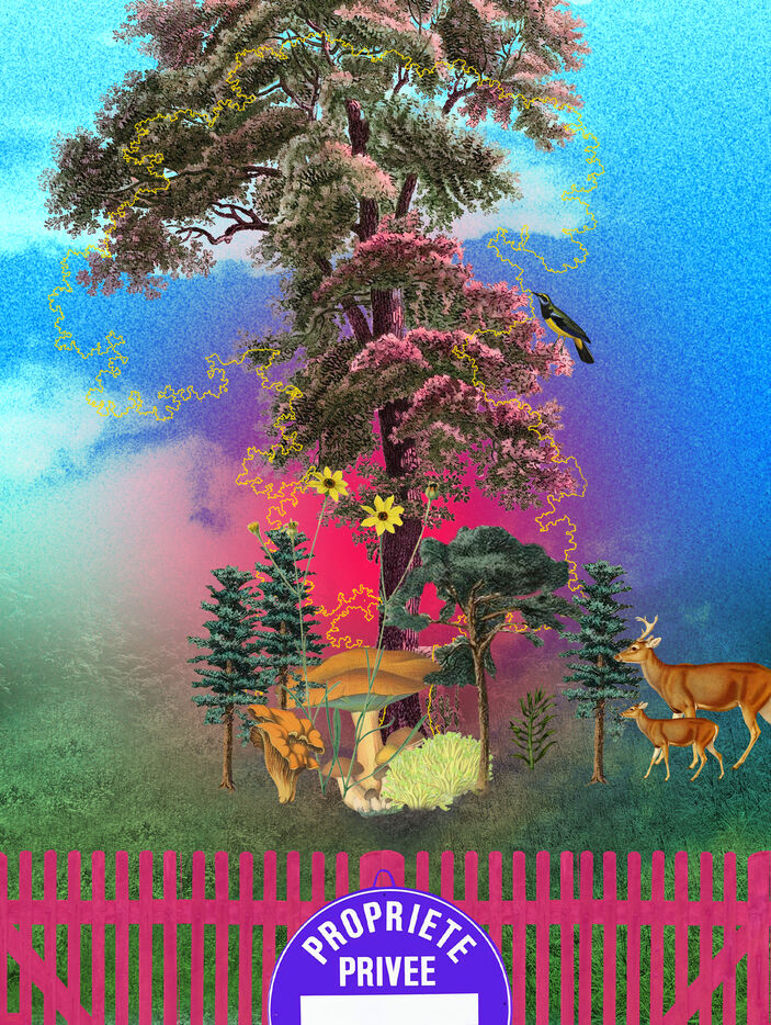 Série de collages et photomontages autour des thématiques écologiques : achat des foret par des citoyens pour les protéger, fonte des glaces, disparition des centres villes dans les villages au profit d'entrées de ville "moches", investissements des particuliers dans des fermes maraîchères .