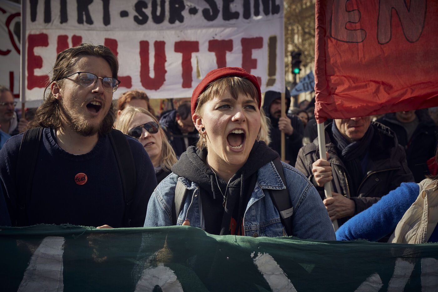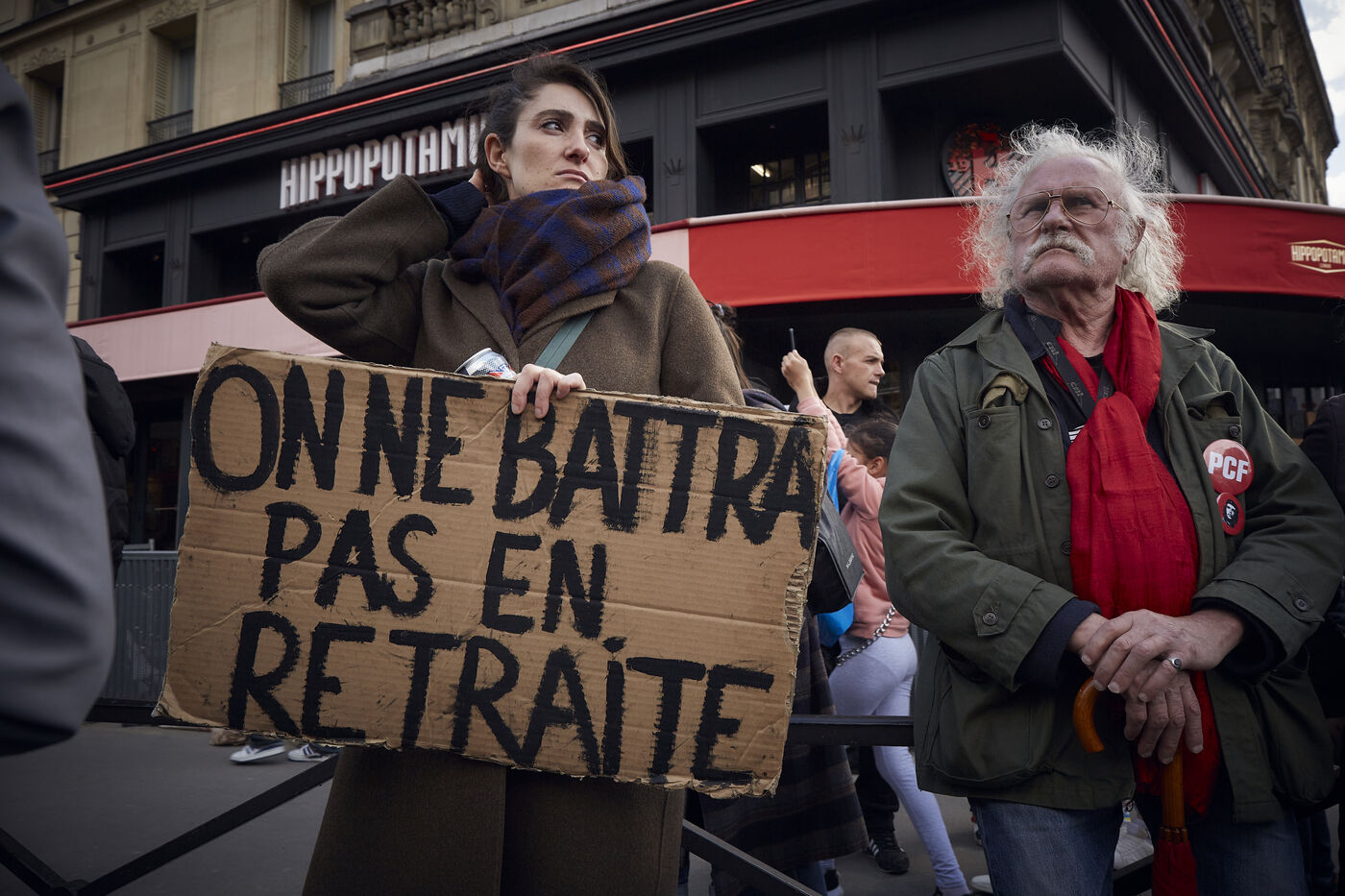 11 ème journée de manifestation contre la reforme des retraites adoptée par 49.3 par le gouvernement d'Elisabeth Borne. 400.000 manifestants selon la CGT, 57.000 d'après la préfecture de police, entre Invalides et Place d'Italie tentent de peser sur la decision du Conseil D'etat.