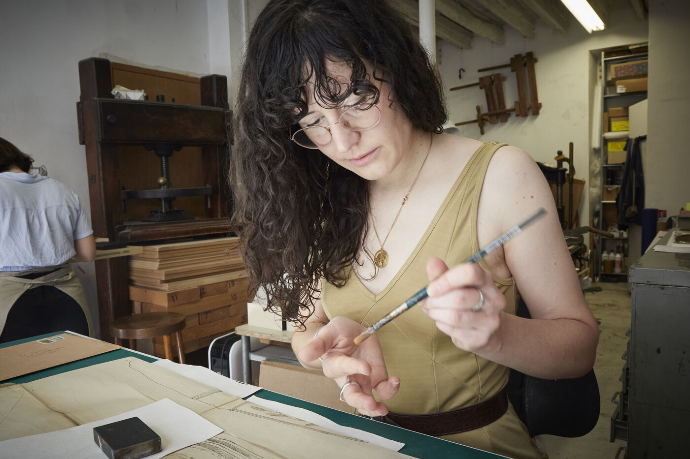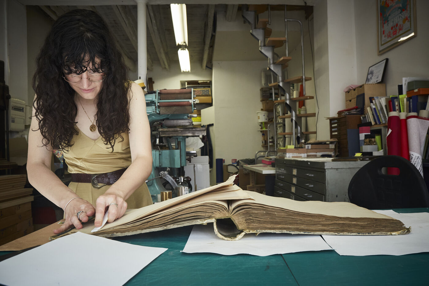 The DREIECK bookbinding workshop, which the young woman co-founded, combines tradition and modernity, carrying out restoration work on old books as well as creative work in collaboration with artists.