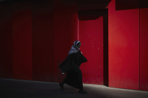 In the spring morning light, everyone is out and about. The pavements are transformed into a shadow theatre. Workers, students and housewives become the anonymous actors.