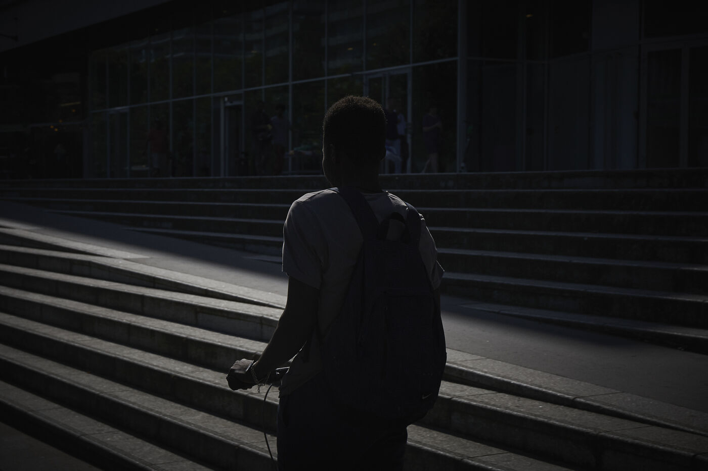 Dans la lumière matinale printanière, chacun vaque. Les trottoirs se transforment en théâtre d'ombre. Travailleurs, étudiants, femmes au foyer en deviennent les acteurs anonymes.