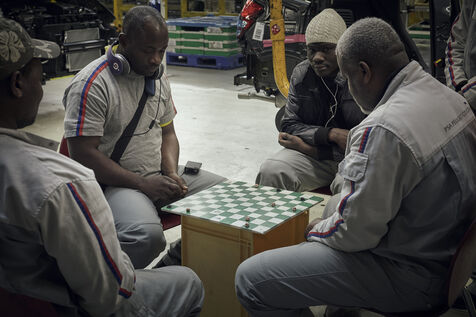 Les chaines à l'arrêt et les ouvriers chômant sont une évidences (même si cela est moins documenté que les tensions émaillant un mouvement de grève). Il est rarement rendu compte de l'espace déserté, du vide qui emplit le bâtiment et les journées, du désoeuvrement et de l'ennui qui rodent et que l'on cherche à tromper.