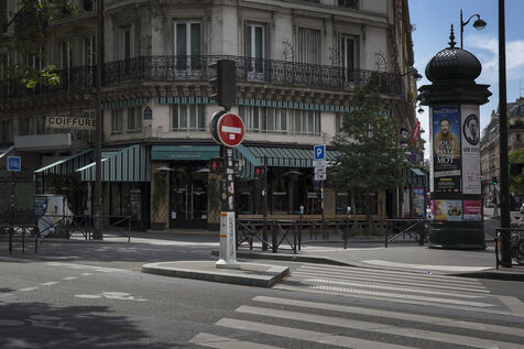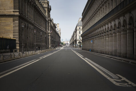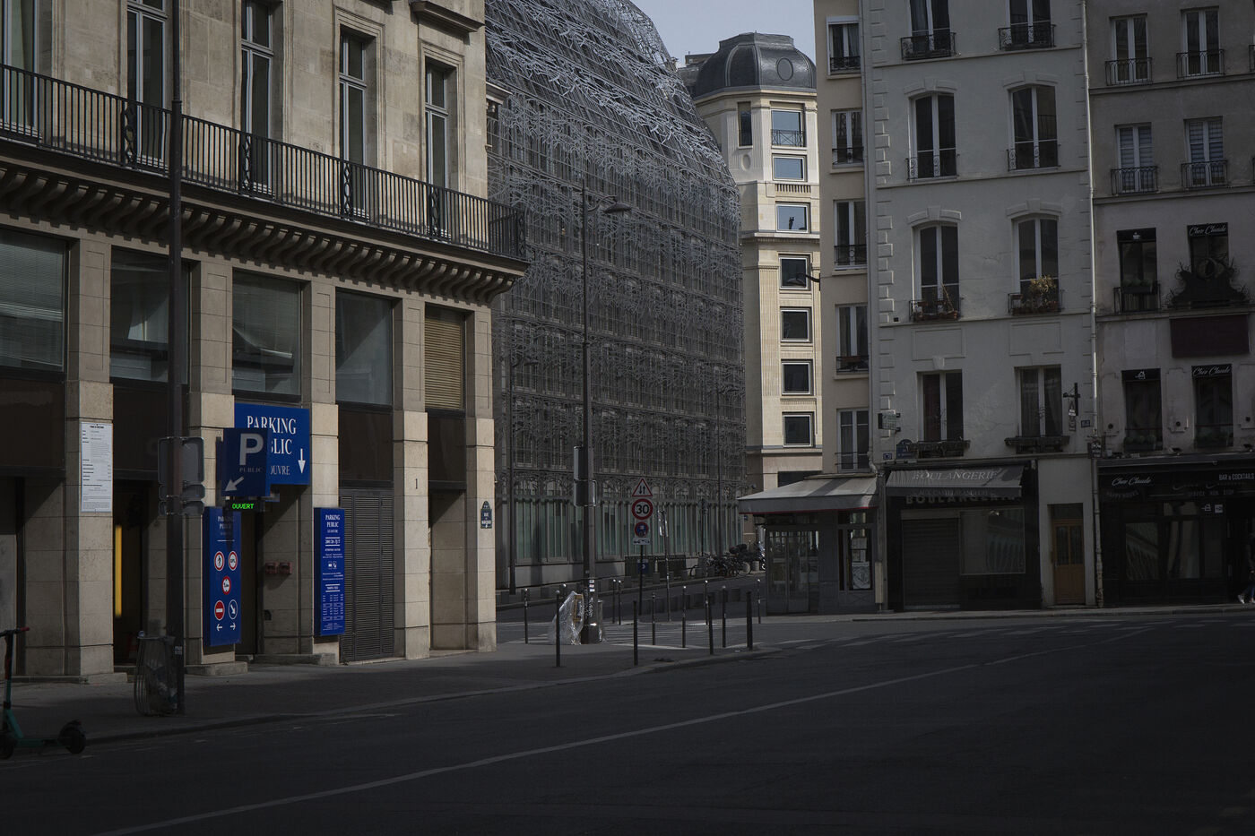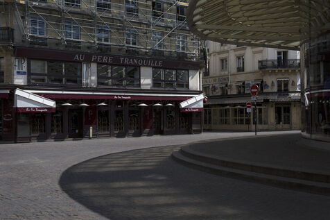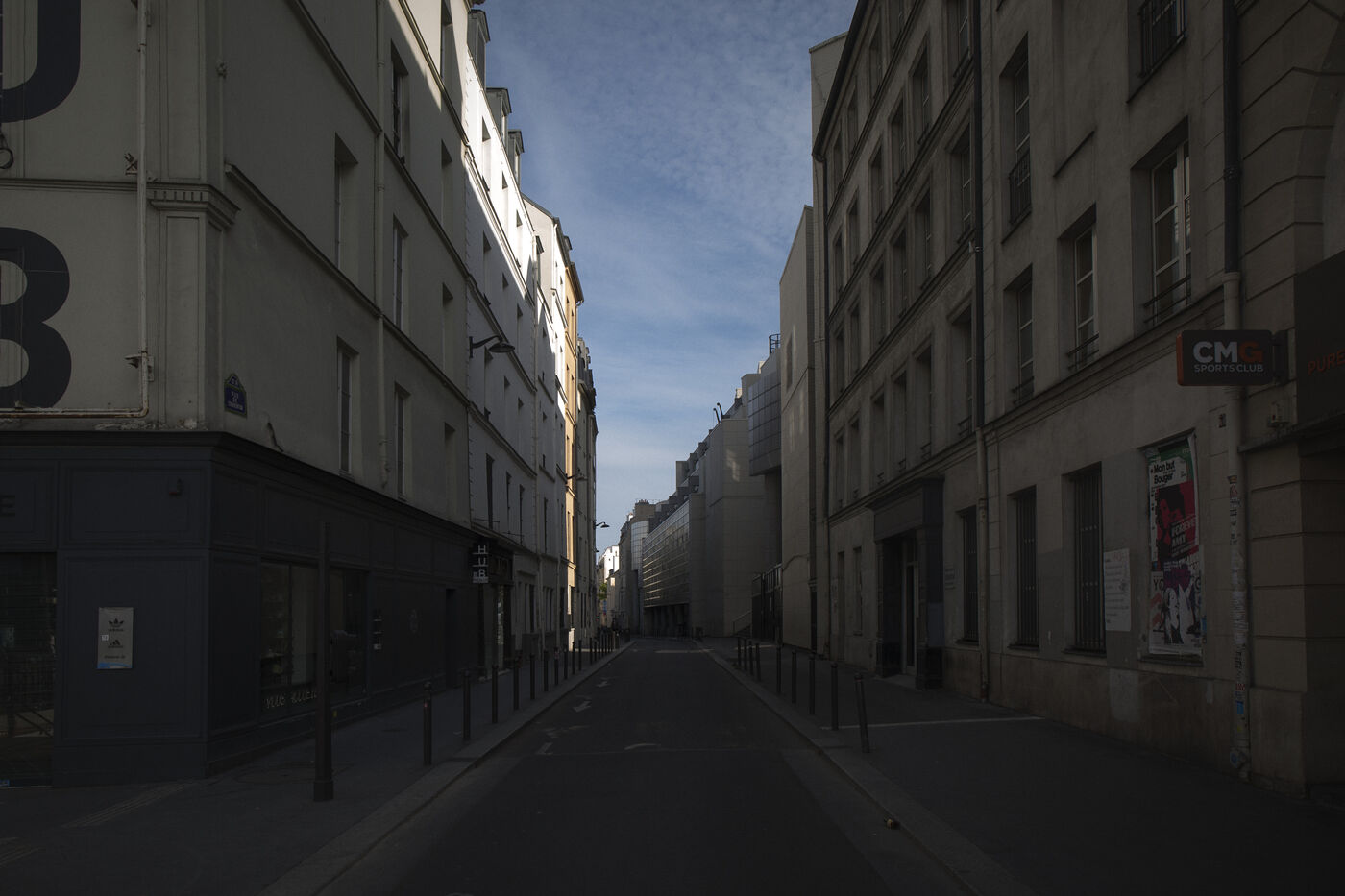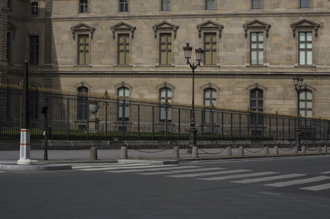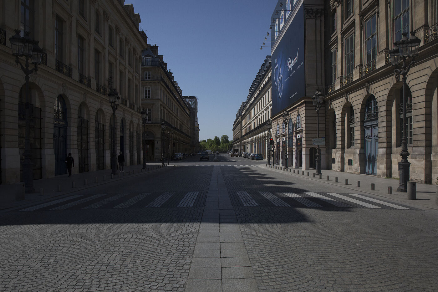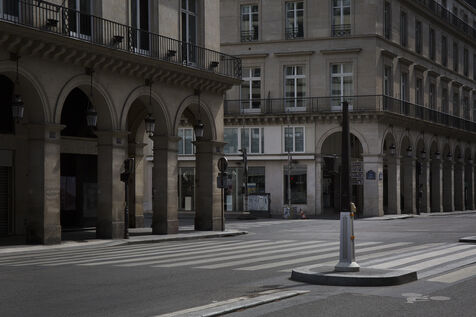 Giving a view. To show the streets of Paris as we never see them. And as very few people have ever seen them, since most of us were locked away in our apartments and neighborhoods. Empty streets, or almost. Images that seem to come out of a science-fiction story, echoing those of megacities the world over, constituting a kind of external shared memory of an event experienced by all. A memory in which everyone can fill in the same gaps, those of sensitive experience of our seemingly emptied cities.