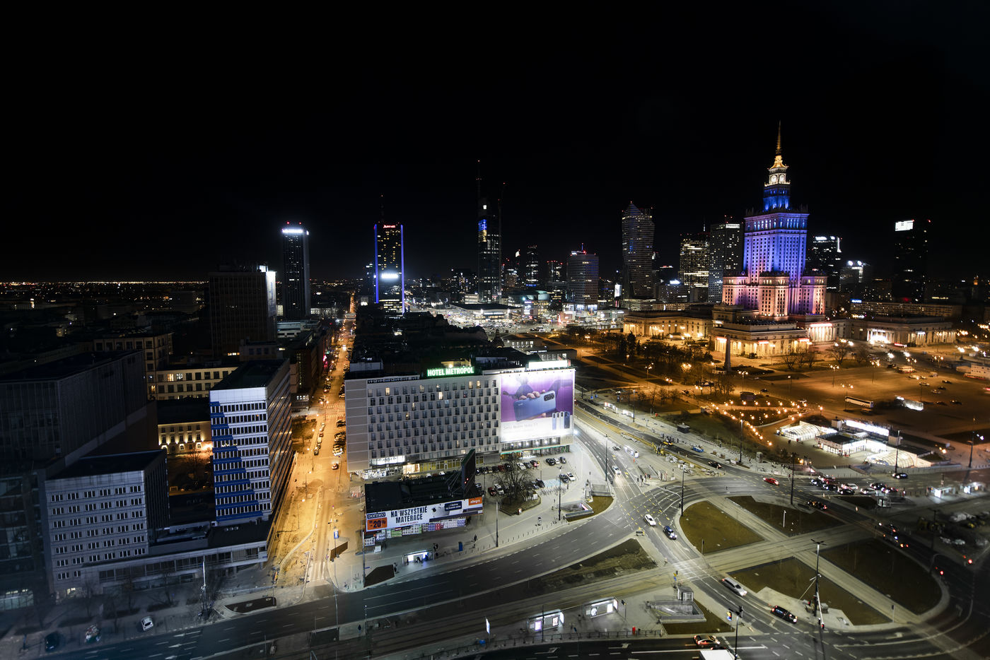 In support of Ukraine, the Palace of Culture and Science lights up at night in the colors of the Ukrainian flag. A symbol all the more powerful, as this tower of Soviet art-deco architecture (42 floors - 237 meters high), ordered by Stalin, and offered to Poland between 1953 and 1955, is one of the "7 Stalinist sisters" that can be found in Moscow and the twin of the current Russian ministry of foreign Affairs (27 floors, 172 meters high).