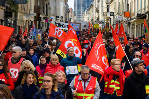 Environ 2000 manifestants selon la police et de 3500 à 6000 selon les syndicats se sont rassemblés à Nancy pour la 7eme journée de mobilisation contre la reforme des retraites à l'appel de l'intersyndicale.