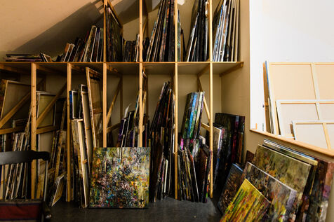 He has not painted in three years. The work demands too much attention to detail, exhausting precision. Yet he has preserved his studio intact, like a living installation, a testimony to a practice shaped by time and its traces.
