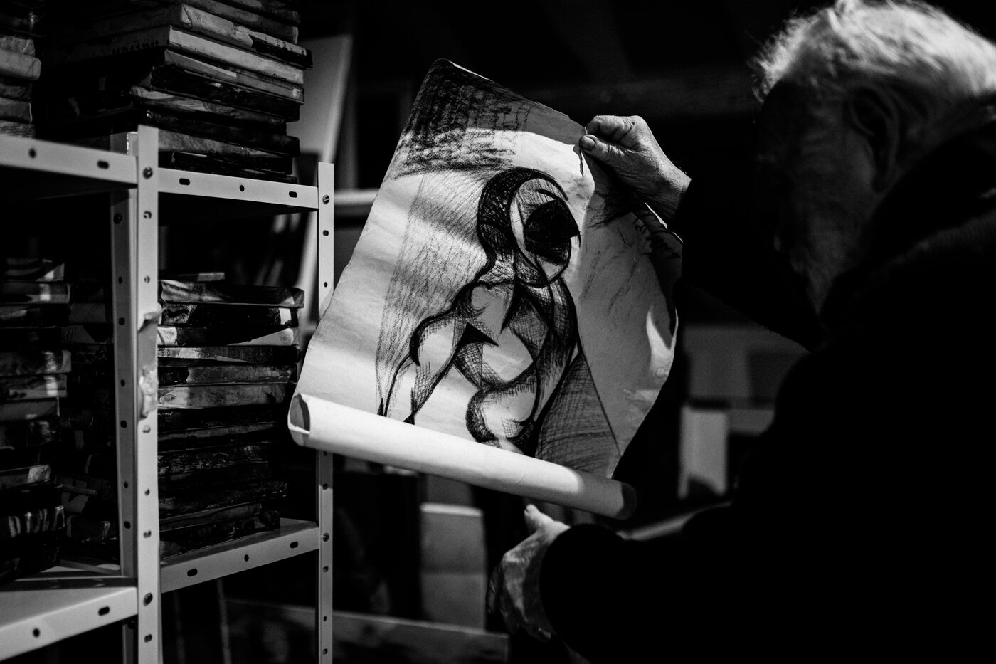 Ce reportage, en alternance de couleur (pour le présent) et de noir et blanc (pour le passé et l’atemporel), propose une plongée dans son univers : portraits intimes, détails d’atelier, fragments d’œuvres, collages et archives. Il ne voulait plus tout raconter. Plus revenir sur la guerre, le père, les années 60, la lutte de son épouse Michèle— sa « très attachée de presse » — contre la peine de mort, les concerts avec Georgie Viennet, Ferré, Ferrat... Tout cela faisait partie de leur histoire.