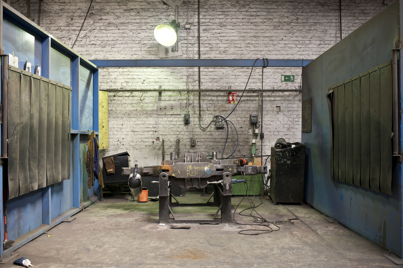 Cette série présente les boxs de travail des ouvriers. Ebarbeurs, soudeurs, pocheurs, fraiseurs-aléseur et autres métiers aux noms très spécifiques s'y succédaient sur un sol en terre battue, dans un batiment prenant l'eau. Glacial en hiver, caniculaire en été. Des conditions que certains qualifiaient de digne de Zola et de son roman Germinal.