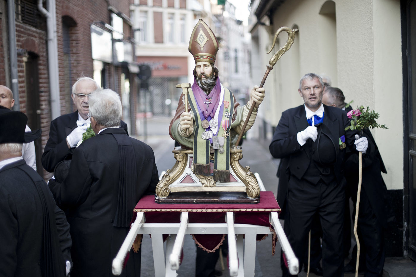 A Béthune, dans le Pas-de-Calais, d'étranges hommes en noir et coiffés de chapeaux bicornes sont omniprésents lors des enterrements. Ce sont les Charitables de Saint-Eloi, une confrérie vieille de huit siècles, née en temps de peste lorsque plus personne ne voulait enterrer les morts. En 1188, deux maréchaux-férrants, Gautier de Béthune et Germon de Beuvry, se rencontrent autour d'une source et entendent Saint-Eloi leur demander de fonder un "karité". Autement dit une confrérie pour s'occuper des morts. Depuis, le rite est immuable. Manteaux noirs, chapeaux bicornes, gants blancs, et procession du cercueil du défunt dans la ville sur une charette à bras, amenée jusqu'au cimetière. Leur service est accompli.