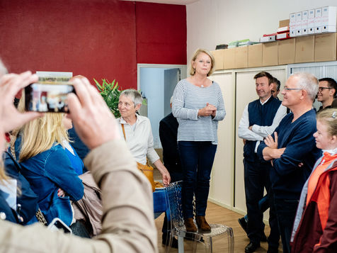 Séance de tractage et réunion avec son équipe de campagne pour la ministre de la santé.