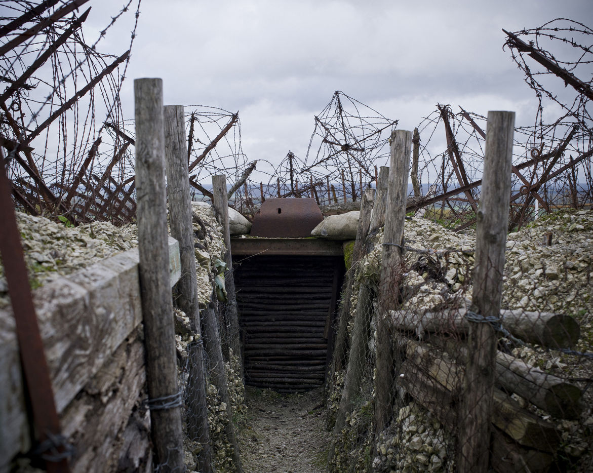 Pendant une quinzaine de jours, je suis parti en voiture à la recherche de cette ligne de front et de ses traces 100 ans après. Paysages vides, reconquis par l'homme et la nature, mémoriaux, touristes, la vie y est plus présente que l'idée que je m'en faisais. Parti de Nieuport en Belgique, là où les alliés et les belges ont inondé la plaine de l'Yser pour stopper l'avancée de l'Allemagne, jusqu'au discret Kilomètre Zéro aux frontières de la Suisse, de la France et de l'Allemagne, c'est une série sur la lumière et l'atmosphère à la recherche des bruits de la « der des der ».