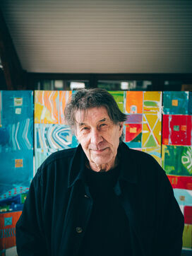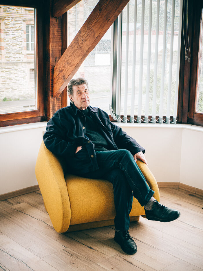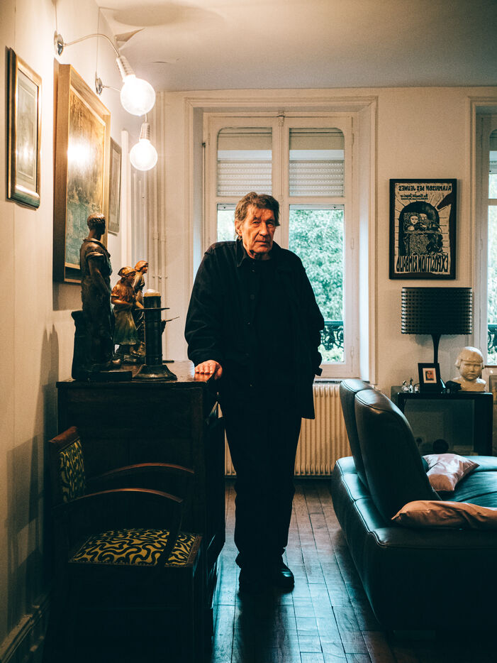 Portrait de l'écrivain Franz Bartelt chez lui, dans les Ardennes.