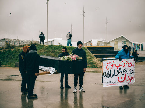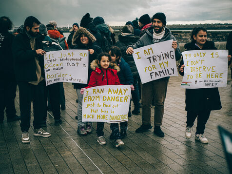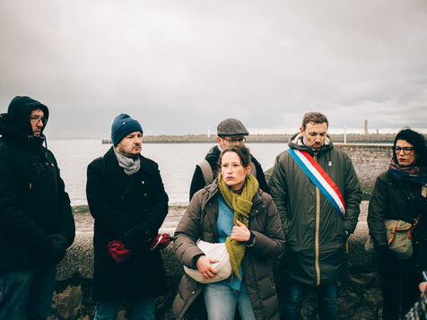 Manifestation à l'appel des associations œuvrant sur le littoral du Nord - Pas-de-Calais, après le record de 84 exilés morts en 2024 lors de tentatives de traversée de la Manche.
