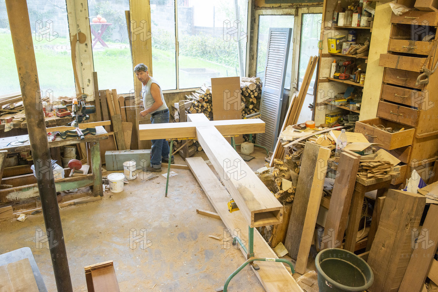 Ebeniste d'art réalise une croix en bois pour une église évangélique