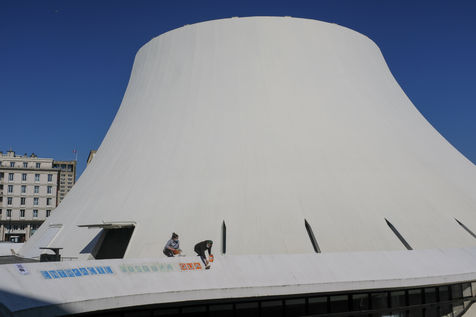 Occupation of the theater le volcano, house of culture, by artists and intermittents, slogans and posters are stuck on the buildings, waiting to see what the authorities are going to do, the mobilization is important, taking turns at night to sleep there .