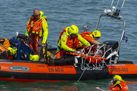 The SNSM of Yport in Seine Maritime, carries out rescue exercises in front of the bay of Yport