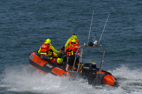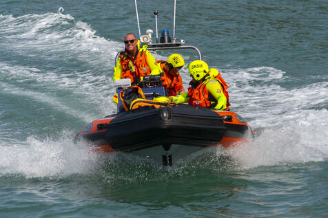 La SNSM d'Yport en Seine Maritime, effectue des exercices de sauvetages devant la baie d'Yport