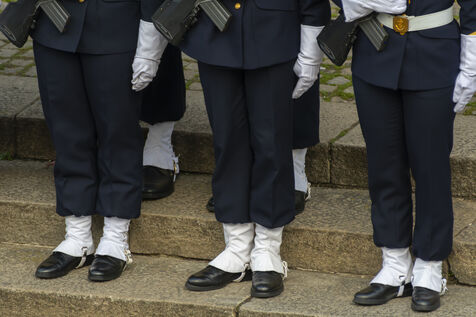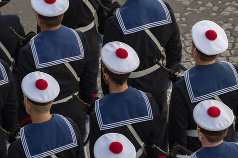 80 years of the liberation of Le Havre, a gathering on rue de Paris in Le Havre with several army corps, soldiers as well as the crowd and the mayor of Le Havre, former prime minister Edouard Philippe.