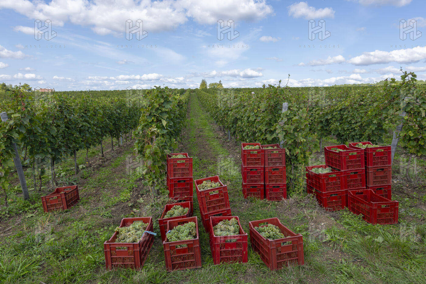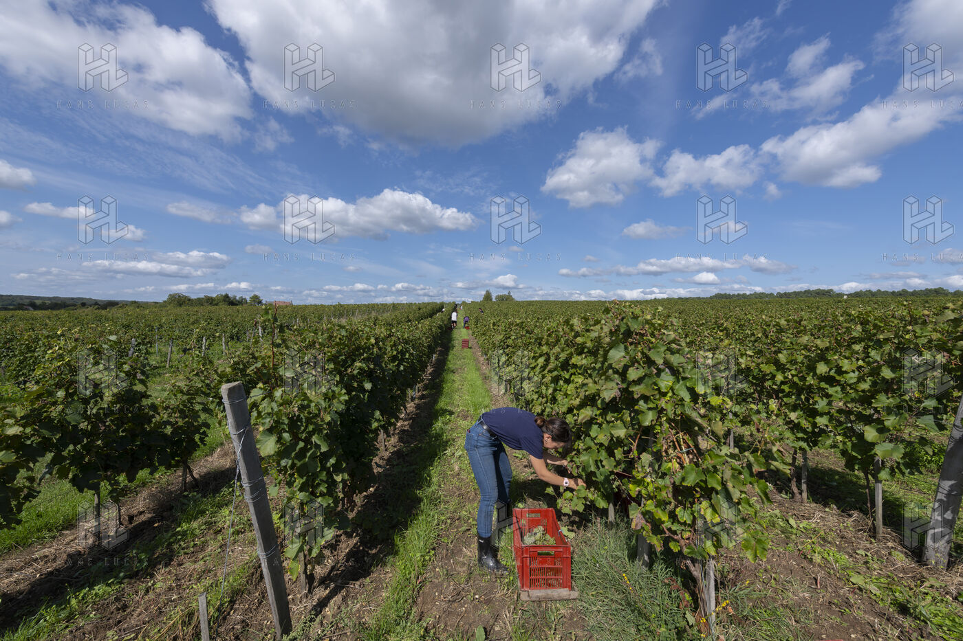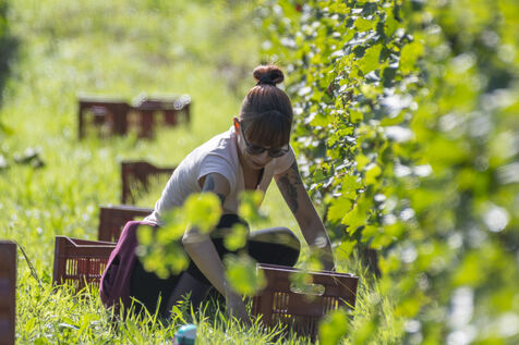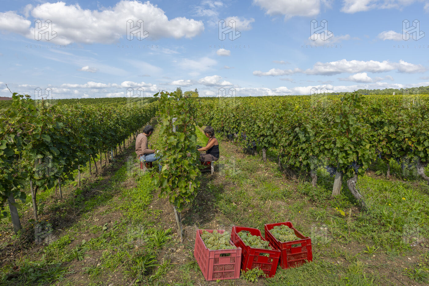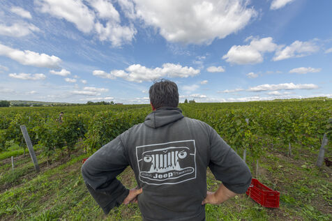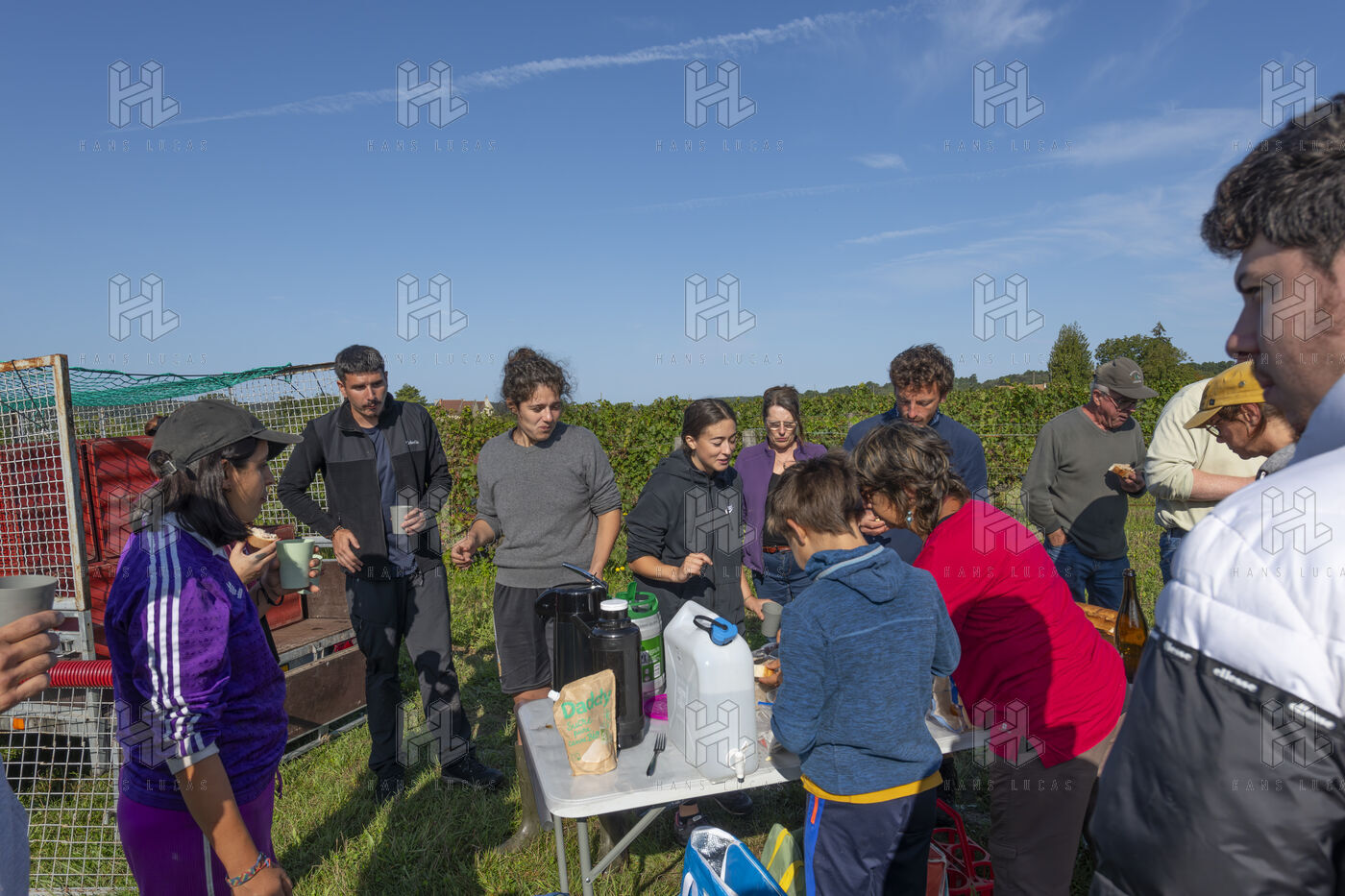 Harvesting of the white Chenin grape, in the vineyards of Sandrine and Christophe Deschamps organic producer, the harvest of the precious white Chenin grape is carried out with many seasonal workers, harvesters who go through each row of vines in search of the bunches of white grapes, which will give this delicious nectar that is Chenin. A lot of work and good humor, music that resounds from portable speakers, enthusiasm and a lot of sweat and back pain. Fortunately then the time for sharing around snacks and small meals punctuates the day.