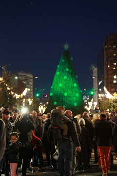 La ville de Toulouse s'est parée de ses illuminations pour les fêtes de fin d'année depuis le 1er décembre 2019. Pour son lancement une parade d'ours géants accompagnés de funambules, danseurs et échassier a été organisée en centre ville dont le point de rassemblement se termine au pied du sapin de Noël géant.
