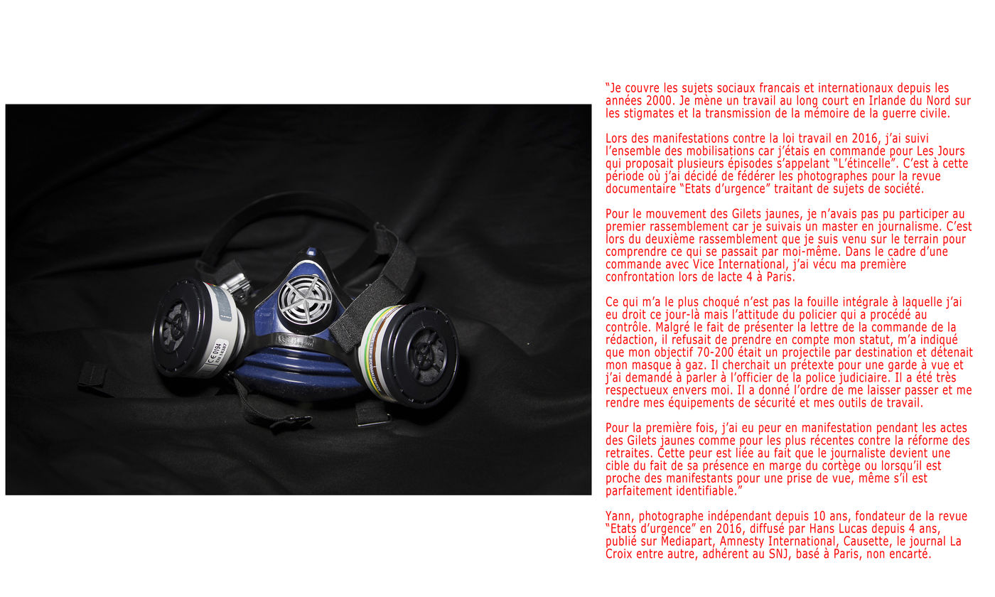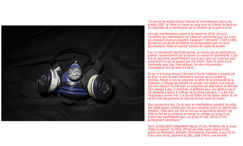Ces images et témoignages ne sont pas le fruit d'un imaginaire ou d'une fiction mais bien réels et vécus. Sans faire un inventaire exhaustif, on pourrait presque y voir un cabinet de curiosités tant il y a de choses étonnantes que les photographes, reporters, journalistes, professionnels, étudiants, amateurs, encartés, non encartés portent sur eux pour protéger leur intégrité physique pendant les manifestations en France depuis plus d'une année.