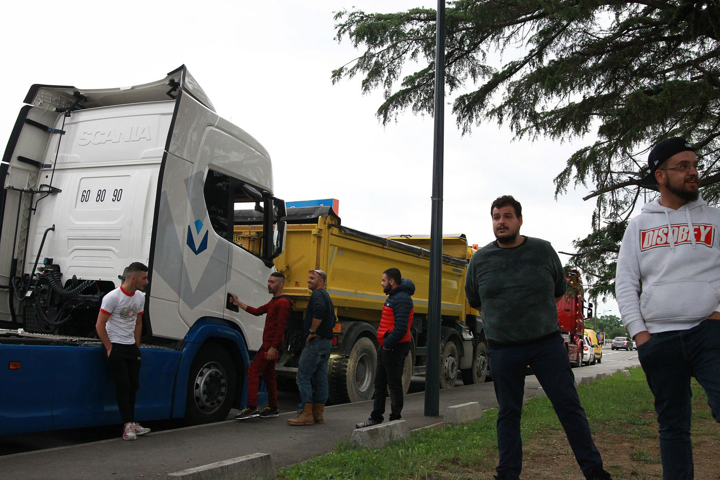 The drivers of the Toulousaine region gathered this Friday, May 15, 2020 in Toulouse to pay tribute to all the actors who mobilized during the confinement period: nursing staff, food surface staff, "little hands", firefighters .... Originally it was Christophe, a truck driver, who brought together all of his colleagues and organized this event which did not go unnoticed in the city center. It is a horn concert where sometimes we had the impression of hearing a symphony. On board with the organizer, I followed the course of this moment which warmed the heart to the nursing staff with whom I was able to chat but also the passers-by dumbfounded, amused and applauding the passage of all the heavyweights.