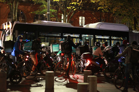 Une première manifestation pour l'ensemble des livreurs de Uber, deliveroo, stuart... à Toulouse