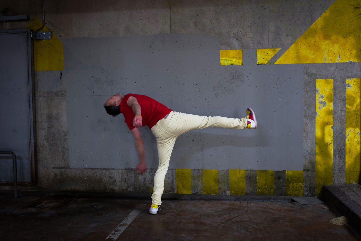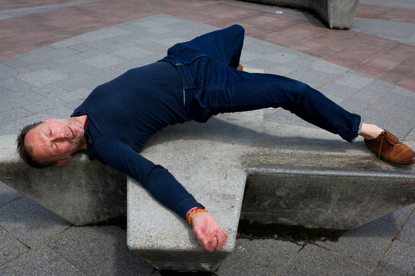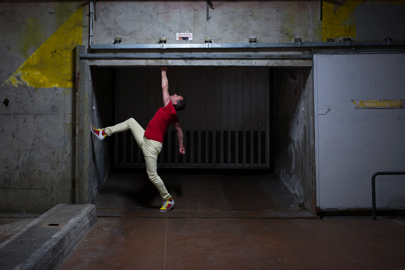 The struggle is not only social, it is also human, psychological. There are those which are visible and expressed sometimes repressed and then those which are killed by modesty, guilt, humility or fatalism. Street furniture is cold, sealed to the ground, rigid, imposed. He is thwarted by this body in movement and color which is inscribed in asymmetry of him, contortions, sets in motion to counter him, to push him back. The body becomes contested in the face of this element which remains soulless fixed on its achievements and victories, which increasingly restrict the other. An artistic collaboration has been implemented with Rodolphe Viaud choreographer and dancer from Toulouse for the realization of this subject.