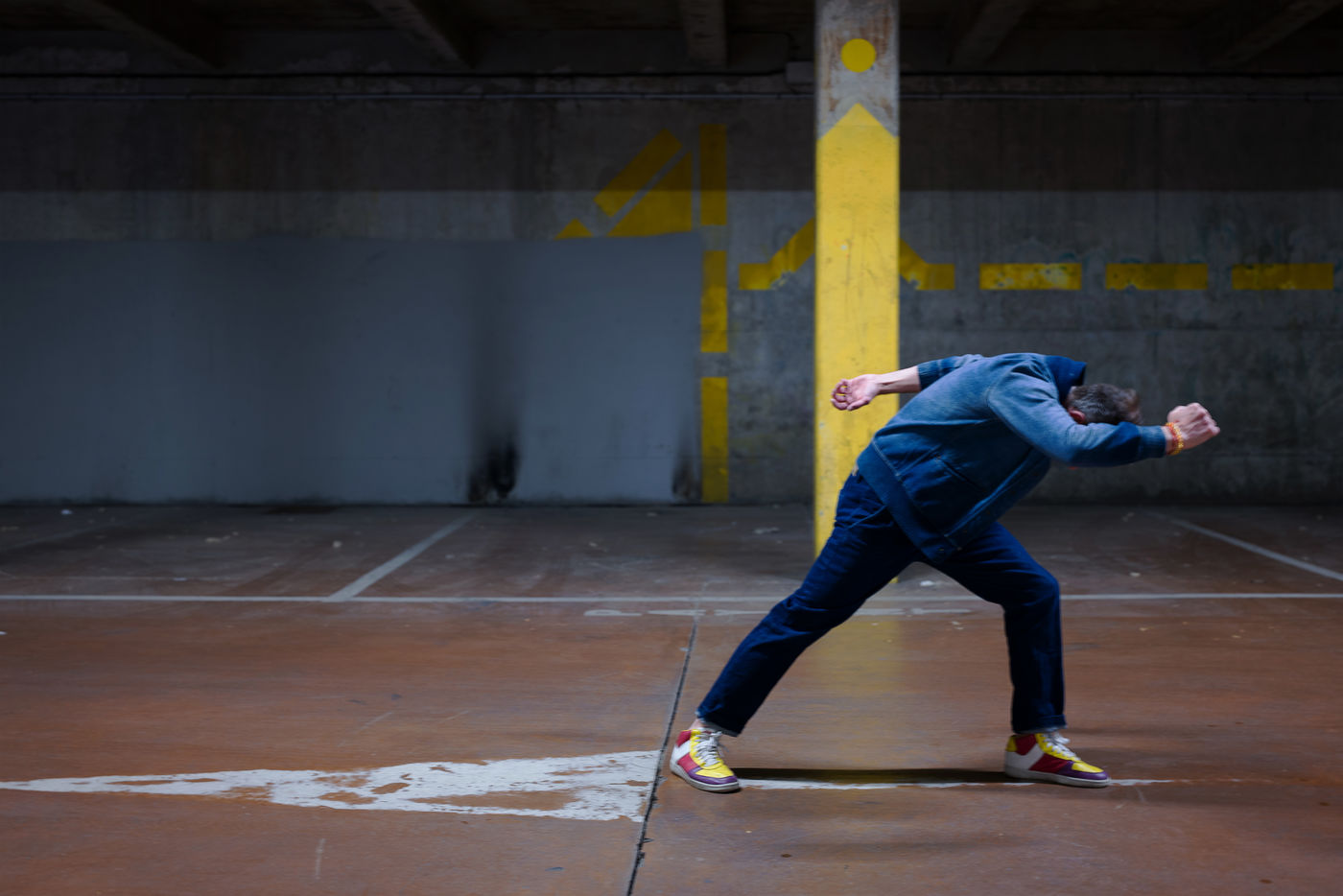 La lutte n'est pas que sociale, elle est aussi humaine, psychologique. Il y a celles qui sont visibles et exprimées parfois réprimées et puis celles qui sont tues par pudeur, culpabilité, humilité ou fatalisme. Le mobilier urbain est froid, scellé au sol, rigide, imposé. Il est contrecarré par ce corps en mouvement et couleur qui s'inscrit en asymétrie de lui, se contorsionne, se met en mouvement pour le contrer, le repousser. Le corps devient contestation face à cet élément qui reste sans âme figé sur ses acquis et victoires restreignant toujours plus l'autre. Une collaboration artistique a été mise en oeuvre avec Rodolphe Viaud chorégraphe et danseur Toulousain pour la réalisation de ce sujet.