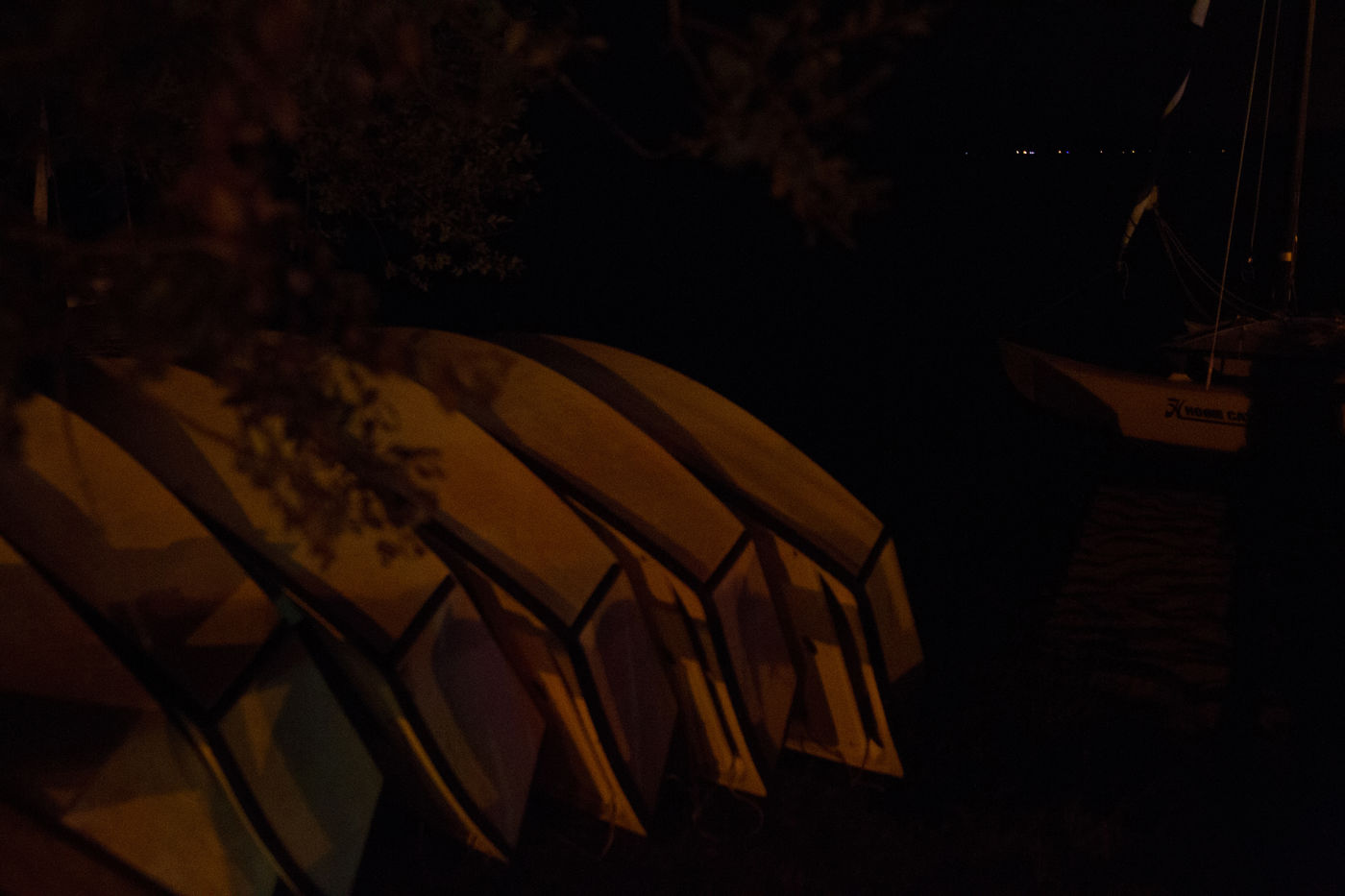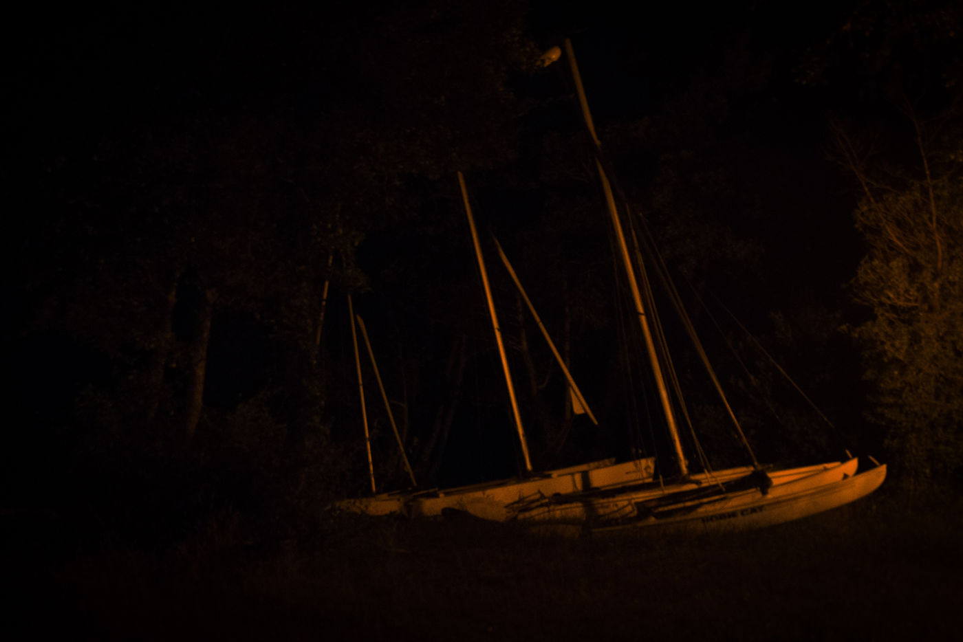 August is generally the time when tourists flock to Les Landes, but at this time of the evening: the boats are without sails, silence reigns around the lake despite the presence of a few walkers. The calm that I noticed there encourages me to wander around at night where only the indirect lighting gives these very pictorial chiaroscuro to the objects, to the place.