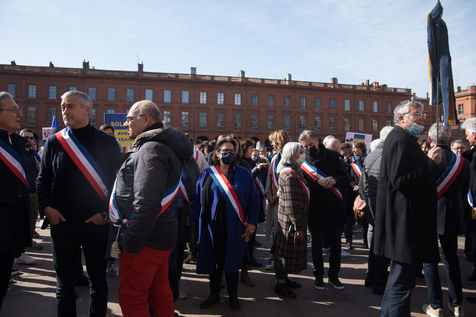 This Sunday, February 27, 2022, a demonstration in support of Ukraine took place this afternoon in Toulouse in the presence of many elected officials, especially since the city is twinned with Kiev. Many people met at 2 p.m. Place du Capitole where many Ukrainian women took the floor, including those who had created an informal organization in an emergency to help Ukrainians and Ukrainians. The procession then proceeded to a march in the city center to finish at its starting point.