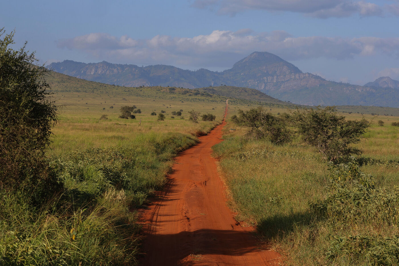 It was at the Taita Hills Wildlife Sanctuary and Tsavo East National Park in Kenya that I came face to face with this raw nature. Here you are a guest, sometimes an intruder who must be humble and discreet. Nobody knows what to expect, or even what animals you will see. Tsavo East National Park is the oldest park to have been opened to the public, inaugurating the sanctuary programmes for natural areas in 1948. It covers an area of 13,747 km2. The Taita Hills Wildlife Sanctuary is a private reserve located near Mount Taita and offering contrasting landscapes, created in 1970. It covers an area of 10,000 km2 on the edge of Tsavo West National Park. The reserve is an integral part of the Eastern Arc Forests, classified as a biodiversity hotspot. It is in this sanctuary and park that you will find the greatest concentration of elephants, more than a third of the 36,000 elephants counted in the country, which have the particularity of being red from the laterite earth they coat themselves with. If you're a keen observer, you might even spot lionesses hiding in the tall grass, ostriches, Grant's zebras, impalas, crescent cobblers, baboons, a variety of birds, Masai giraffes, buffalo... It's a breathtakingly beautiful sight to behold.