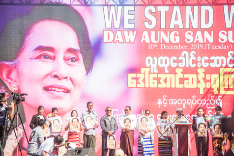 Alors qu'Aung San Suu Kyi répondait aux accusations de génocides des Rohingyas à La Haye, de nombreux rassemblement de soutiens à la prix nobel de la paix apparaissent partout dans le pays.