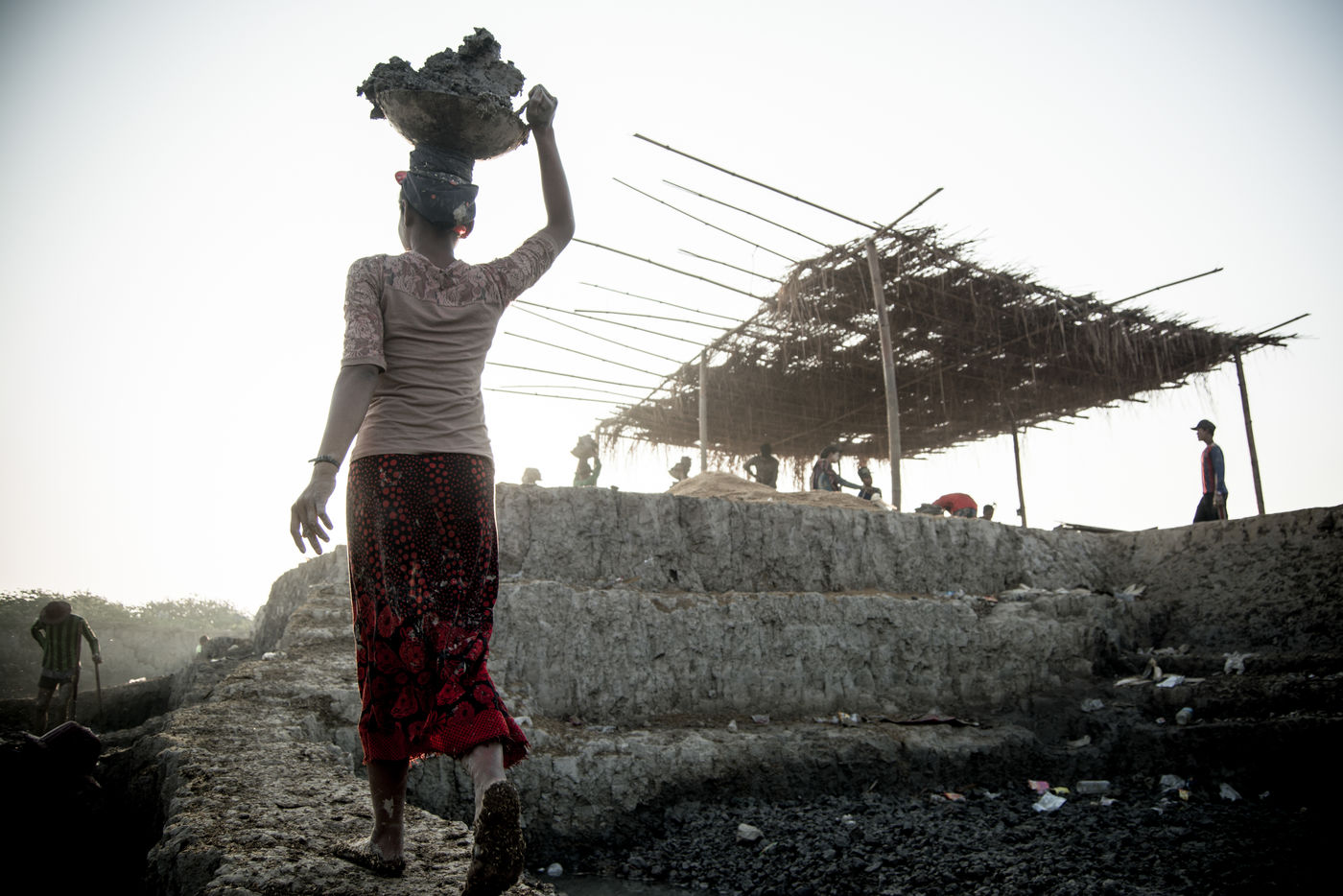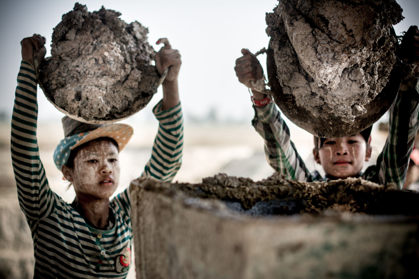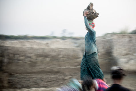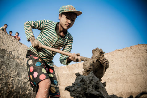 A field of bricks waits to be dried. Ephemeral makeshift dwellings have come to mark the edge of a clay quarry outside Hpa-An, Burma. The rhythm of the quarry is set by the rhythm of the pickaxes, while the rotation of the porters makes the dance. We are in the heart of a community of about thirty families, who meet every year for a six-month season in the brick factory. Here, each member has a role to play in the production chain, where age defines the position. If this operation gives work to the youngest, it forbids it to those under 13 years old, offers two days off per week and restricts the working hours. These are welcome rules for a childhood with feet of clay. In 2013, 168 million children in the world were involved in child labour, 85 million of them in dangerous conditions according to the International Labour Office.