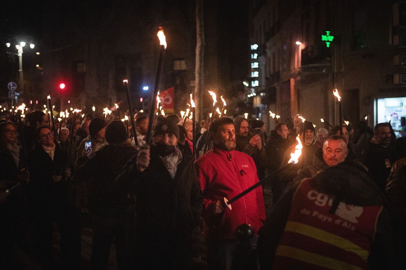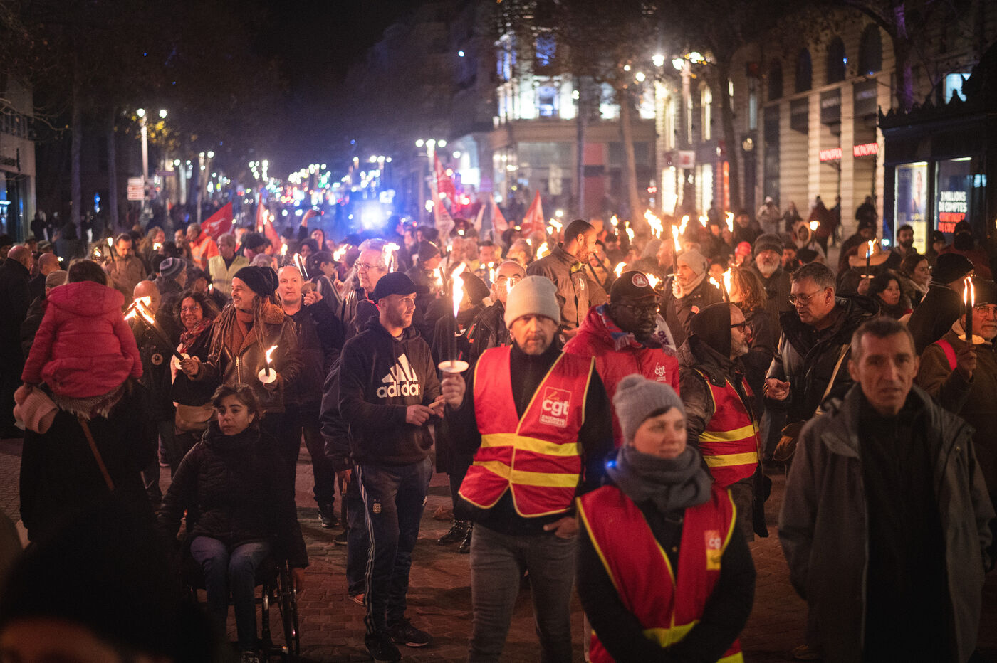 On Tuesday 17 January, the CGT organised a torchlight procession before the big mobilisation on 19 January everywhere in France against the new pension reform
